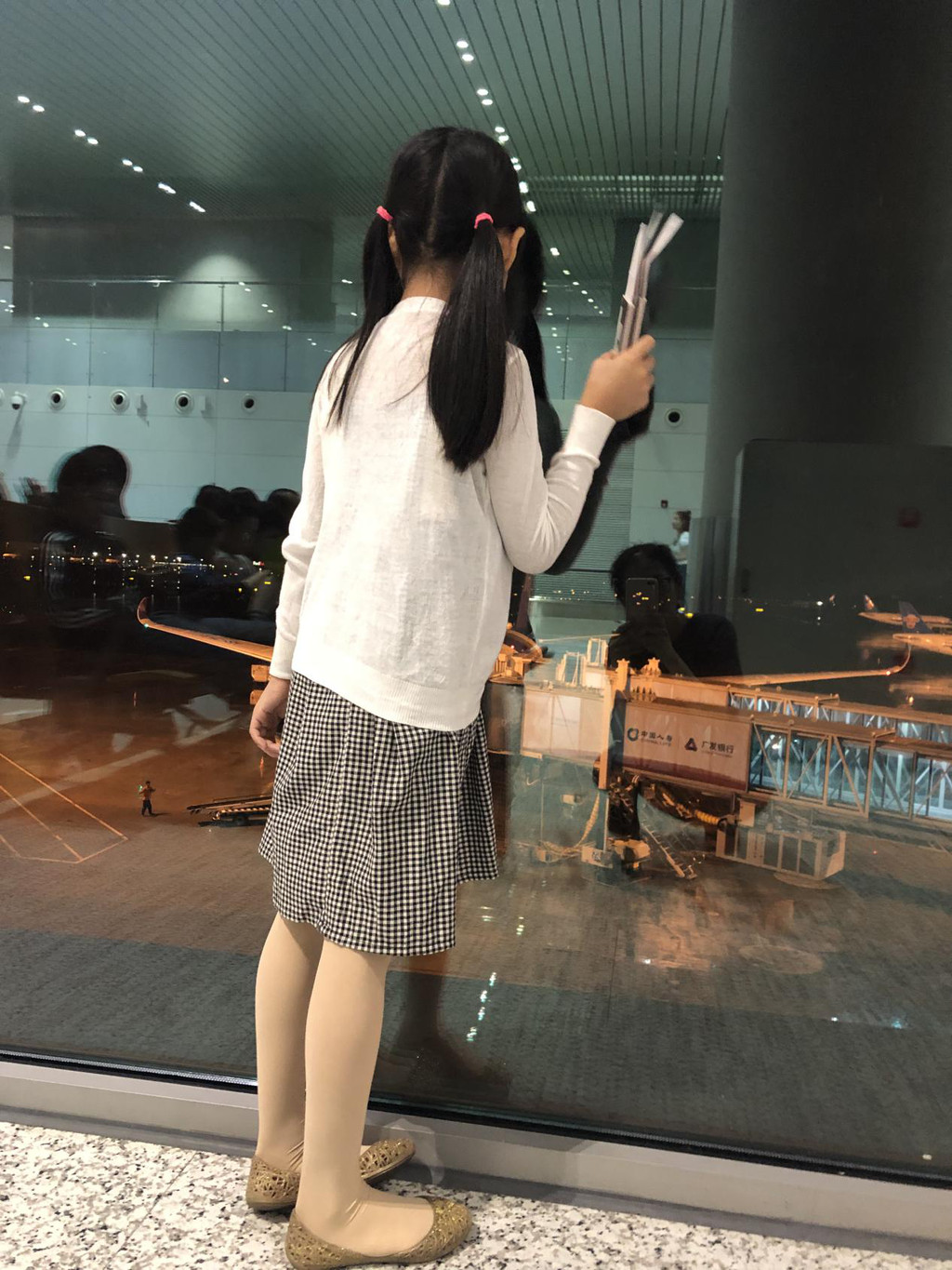 翘首望着我们即将登上的飞机