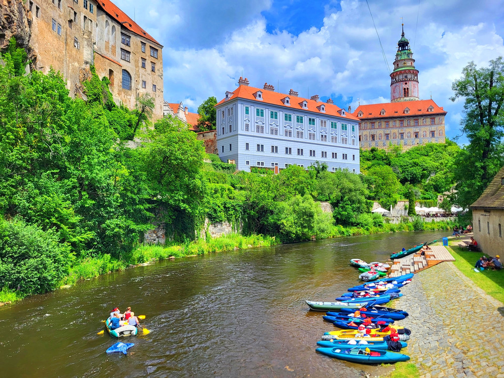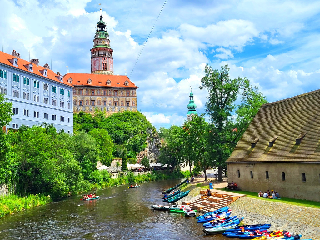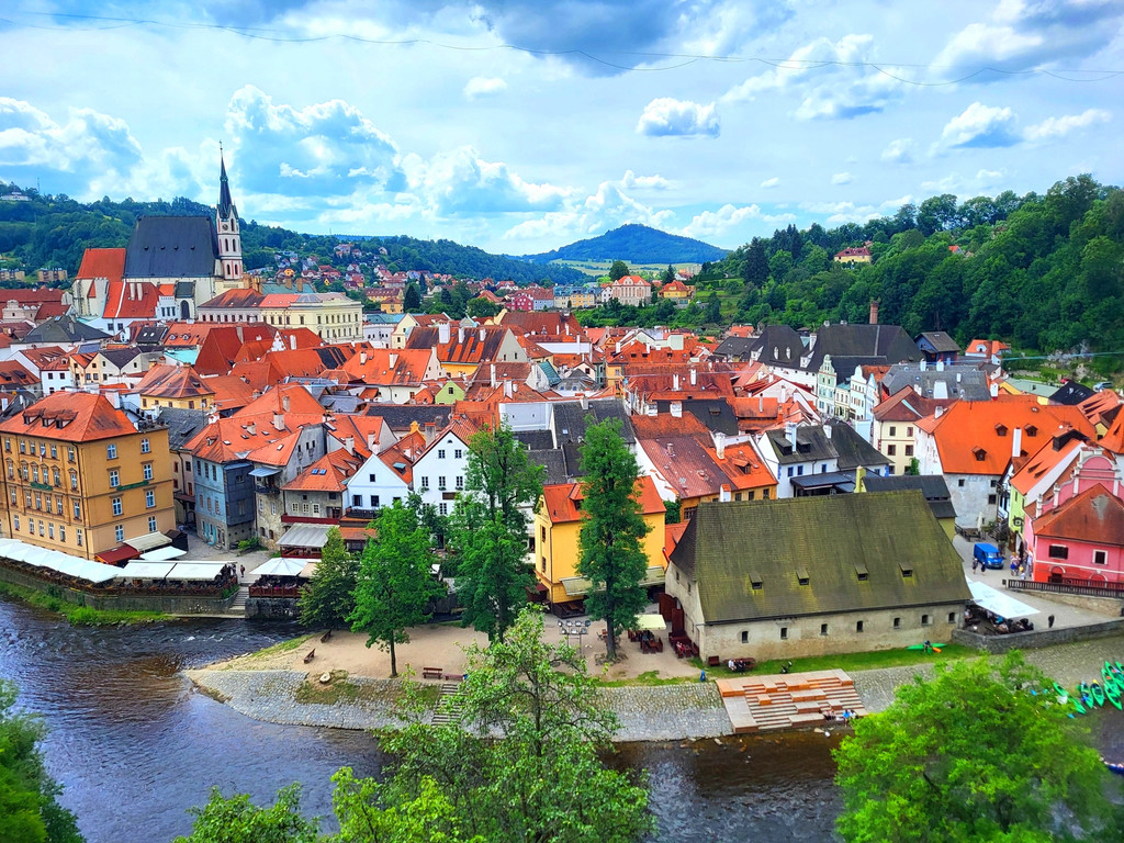 克鲁姆洛夫(又名CK小镇)。小镇位于伏尔塔瓦河的上游,距捷克首都布拉格约160公里。该小镇在13世纪时由于其处于一条重要的贸易通道上而逐渐繁盛。大部分建筑建于14世纪到17世纪之间,多为哥特式和巴洛克式风格。整个小镇被流经该处的马蹄铁形的、宽阔蜿蜒的伏尔塔瓦河环抱着,而著名的城堡则建在河的对岸,风采依然。登高远眺,以城堡为中心的中世纪城市一望无边,令人惊叹。是世界上最美的几座城市之一。1992年,联合国教科文组织宣布授予它“世界文化和自然双重遗产”的头衔。