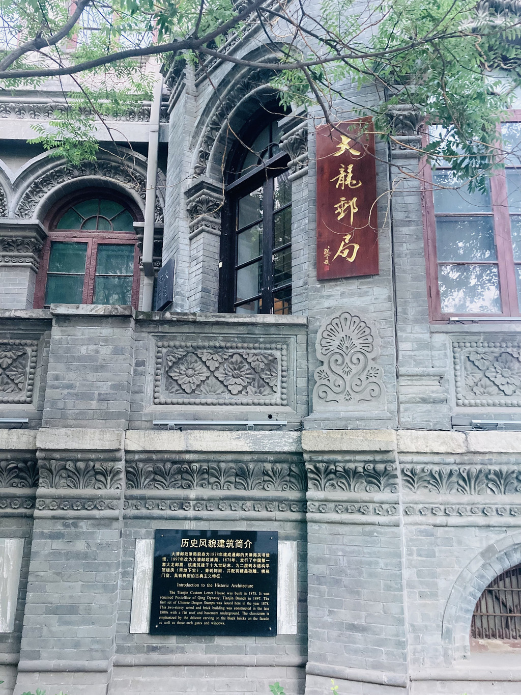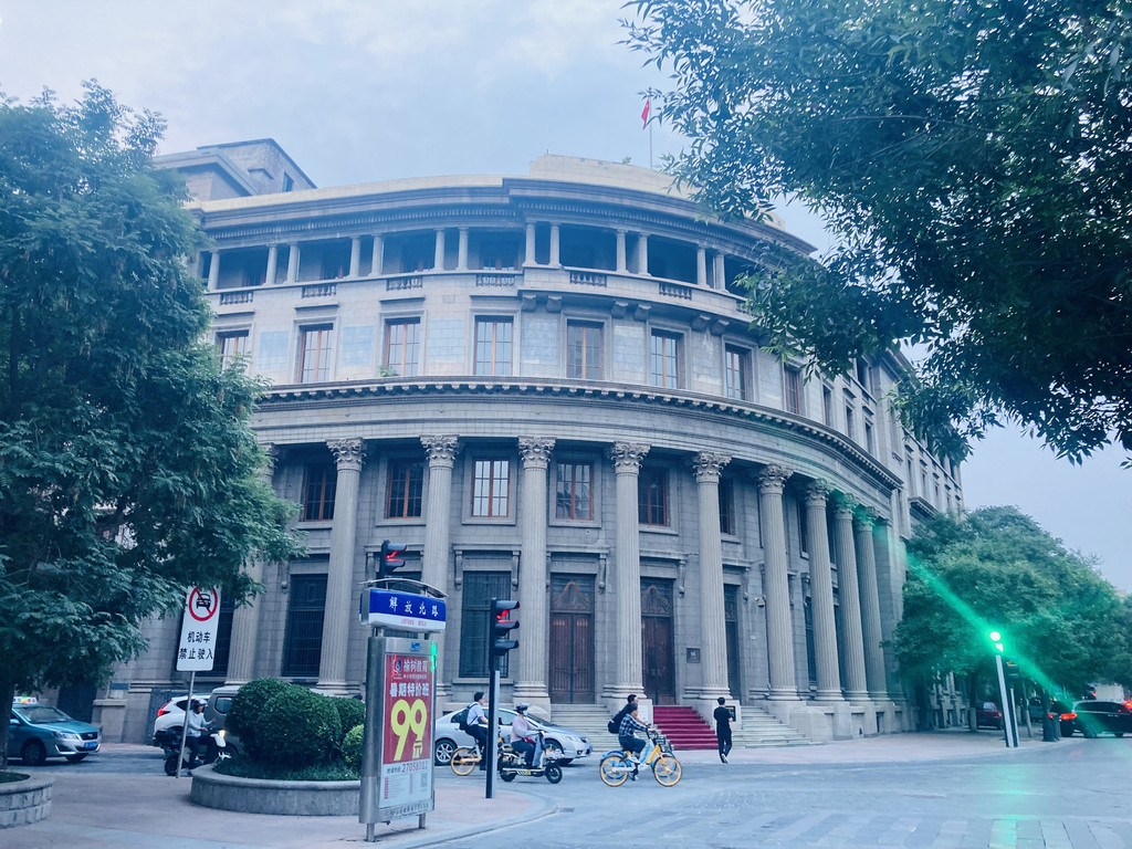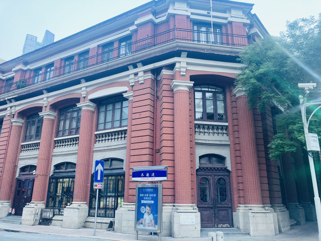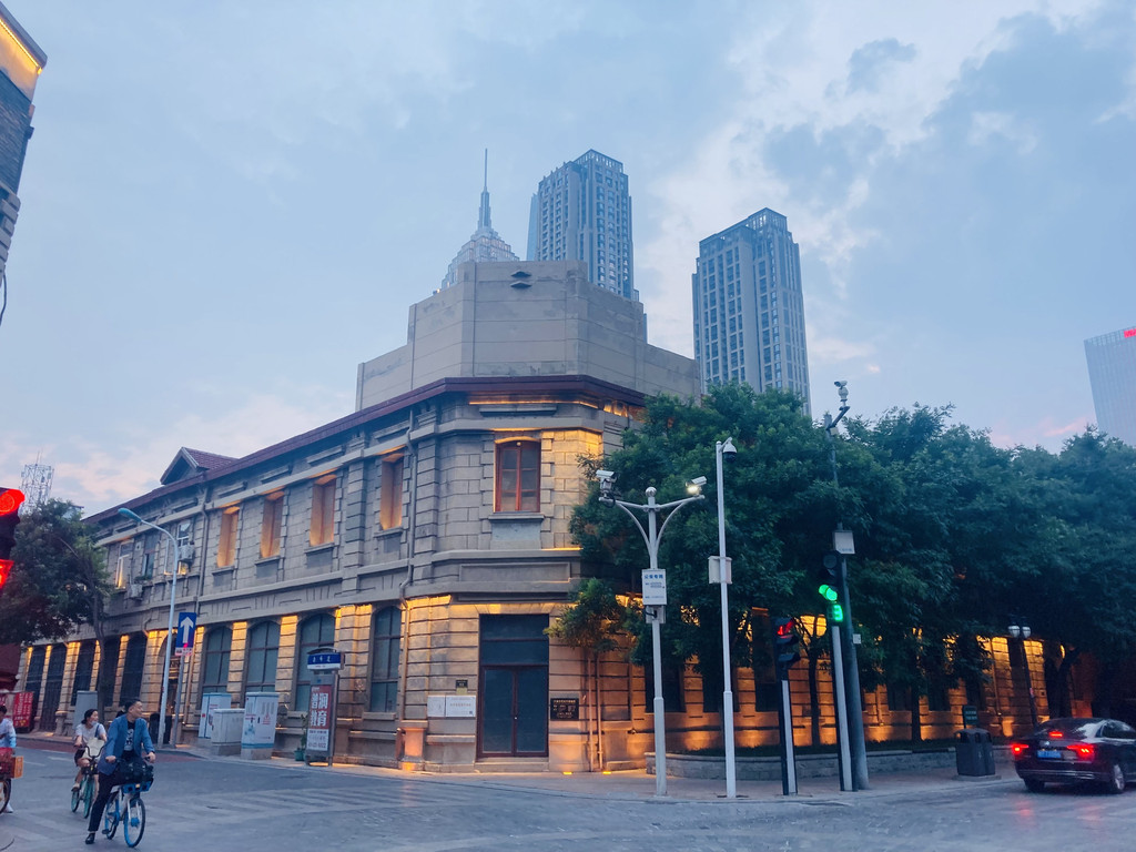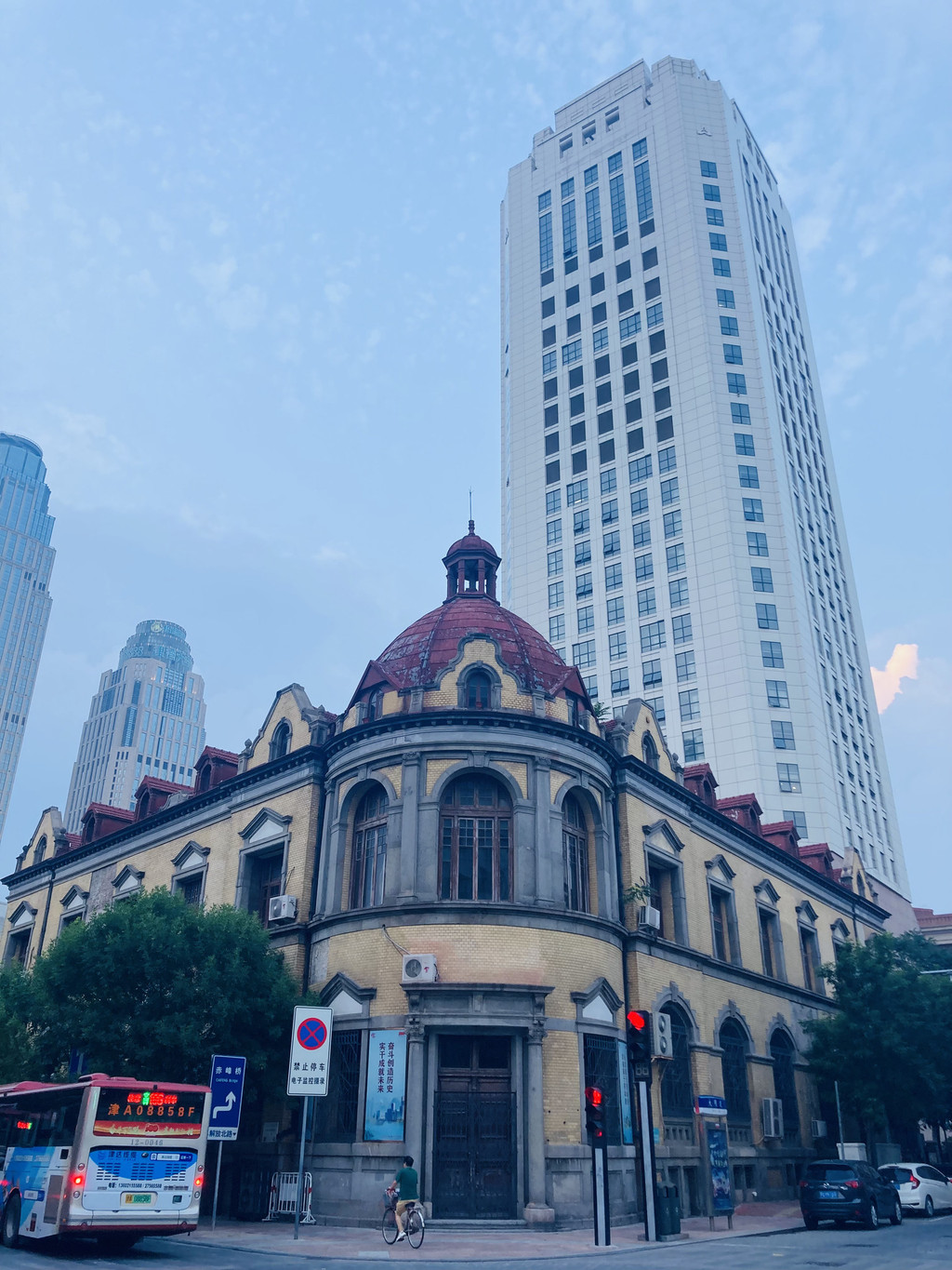 从庆王府出来扫了辆单车延马堤道一路骑到海河边观光道,中间肚子逛饿了,在“起士林”白房子附近找了个新开的面馆吃了碗肥肠面,被辣的汗如雨下,又悔得不行。对吃的没甚要求,简单吃饱就行,继续逛。因为天还大亮,河边倒是没什么好看的。在沿河骑行过程中被路边的异国风情建筑吸引,遂变道骑了过去,误打误撞来到了解放北路,完全是计划之外。