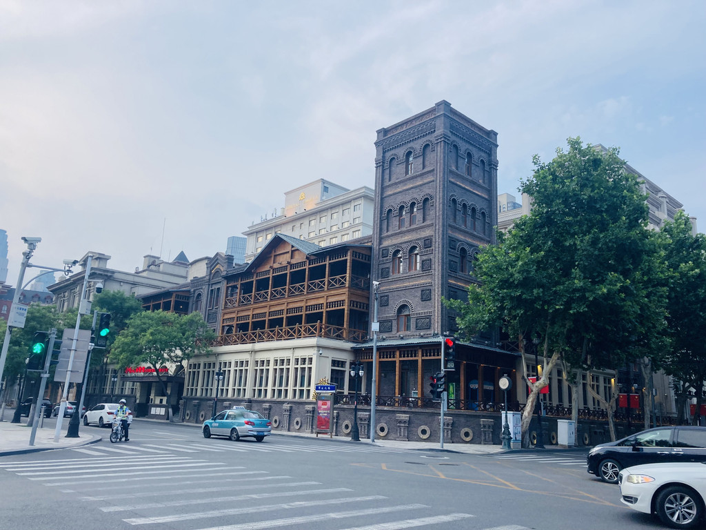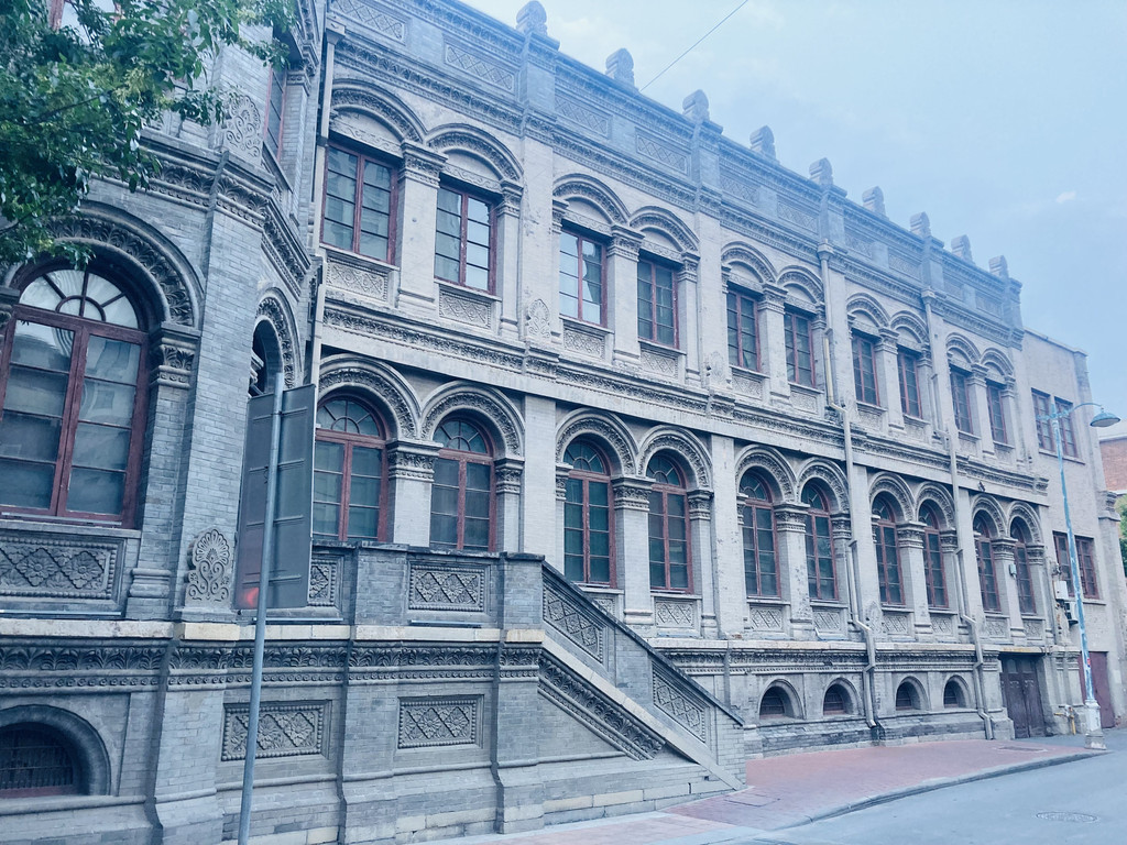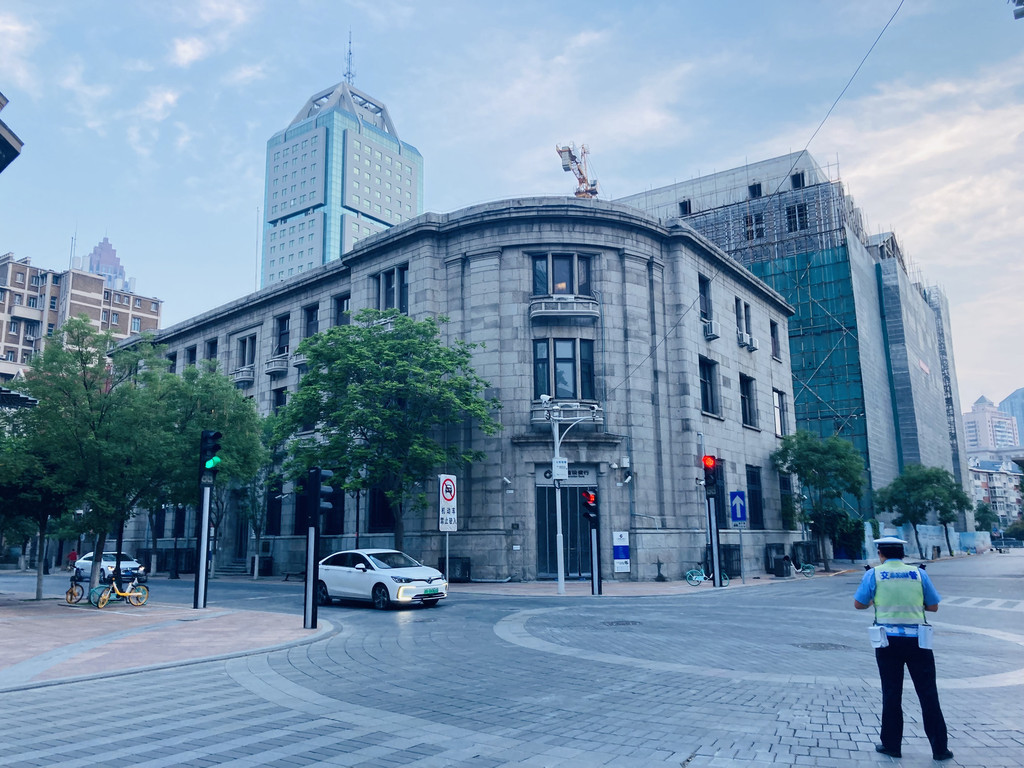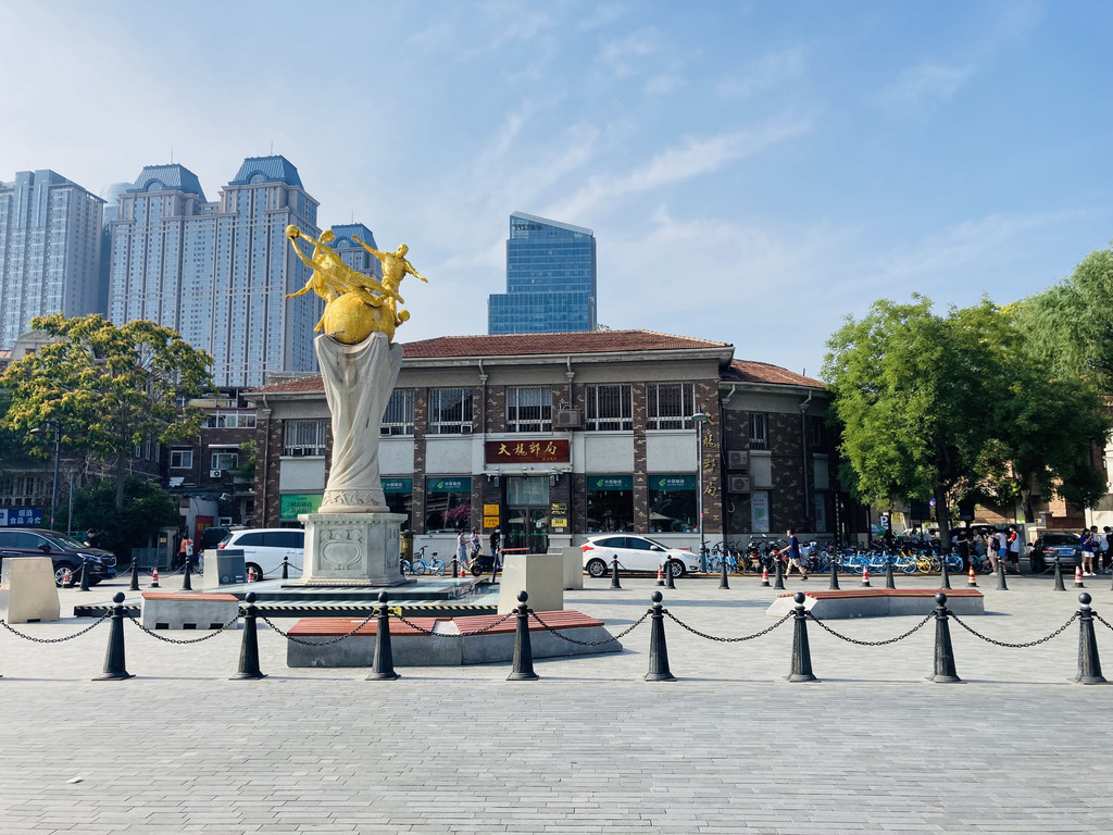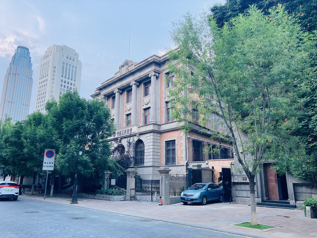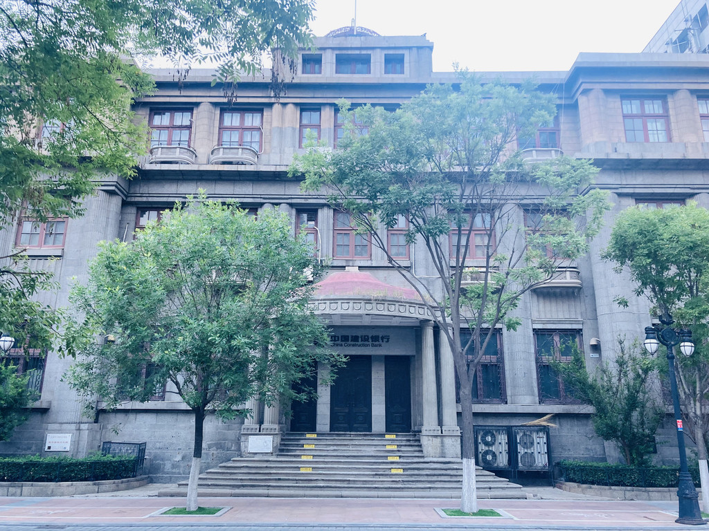 从庆王府出来扫了辆单车延马堤道一路骑到海河边观光道,中间肚子逛饿了,在“起士林”白房子附近找了个新开的面馆吃了碗肥肠面,被辣的汗如雨下,又悔得不行。对吃的没甚要求,简单吃饱就行,继续逛。因为天还大亮,河边倒是没什么好看的。在沿河骑行过程中被路边的异国风情建筑吸引,遂变道骑了过去,误打误撞来到了解放北路,完全是计划之外。