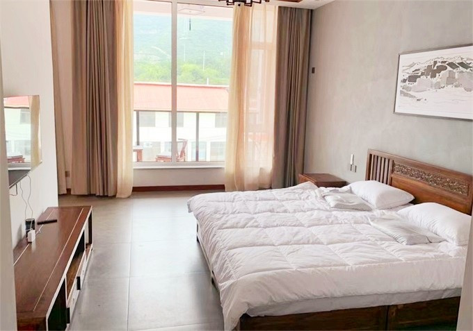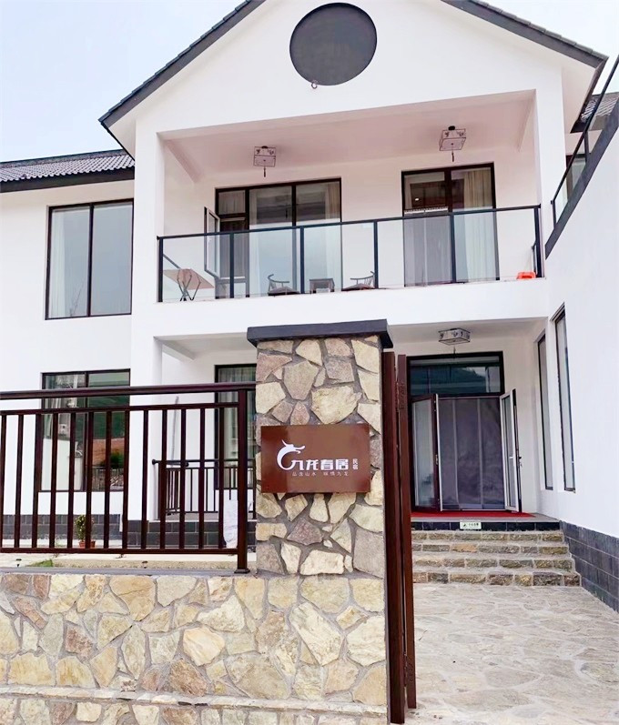 天津蓟县穿芳峪九龙春居精品民宿,坐落在一条漂亮的乡道边,交通方便,纯白色的独栋建筑,在众多房屋中显得尤为特别,民宿共二层,总面积700多平米,二楼有露台40多平米,有茶具桌椅,闲暇之余在阳台上喝茶赏景,看这个有山有水、绿荫环绕的地方。