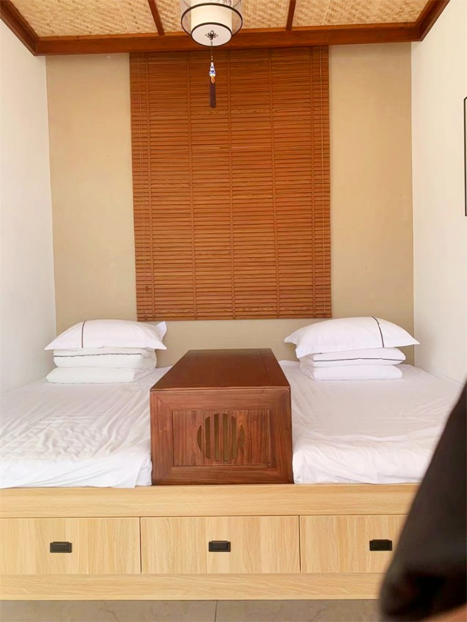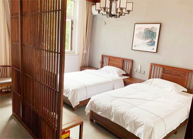 房间设施:民宿客房共计9间,房型大床房,双人间,榻榻米,套房等,可以容纳游客20-25人。中式传统的客房,显得既大气又典雅。所有房间的设施都是按照高端酒店的标准配置,多种不同风格的房型,不管是出差、亲子、家庭都能找到合适的房间哦!