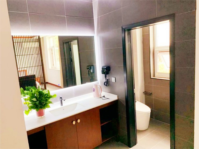 洗手间是提供洗护用品,毛巾、浴巾、洗发水、沐浴露、护发素、洗手液、吹风机、这里还没有商业化,特别适合安静地度假。