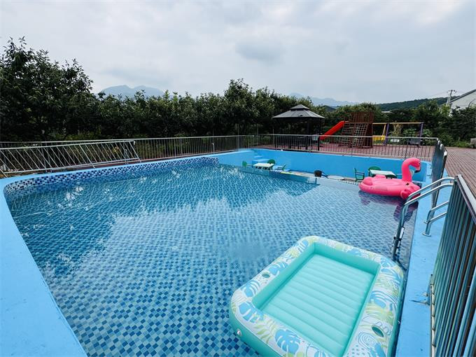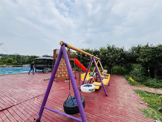 亮点特色:农家院设有户外泳池,为游客提供了一个在休闲度假时享受游泳乐趣的场所。在夏日里,游客可以在泳池中畅游,放松身心,感受清凉。周围的自然环境也为泳池增添了一份惬意,让游客在享受游泳的同时,还能欣赏到周边的美景。