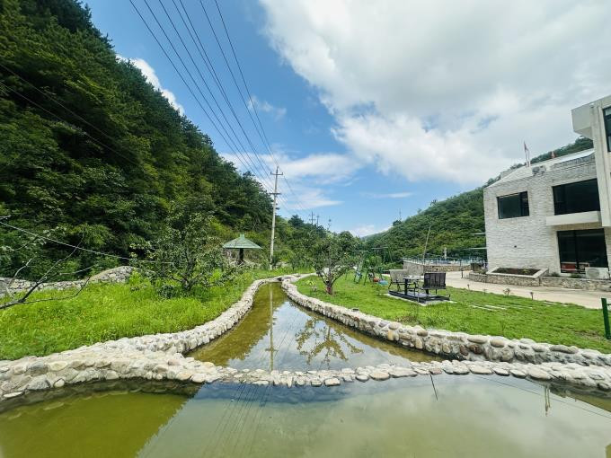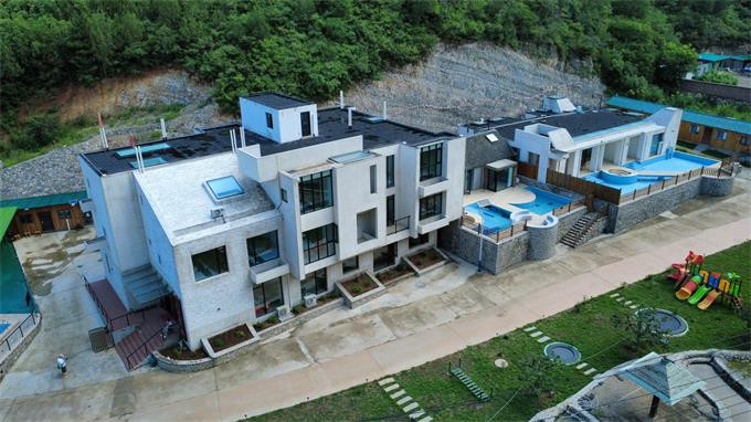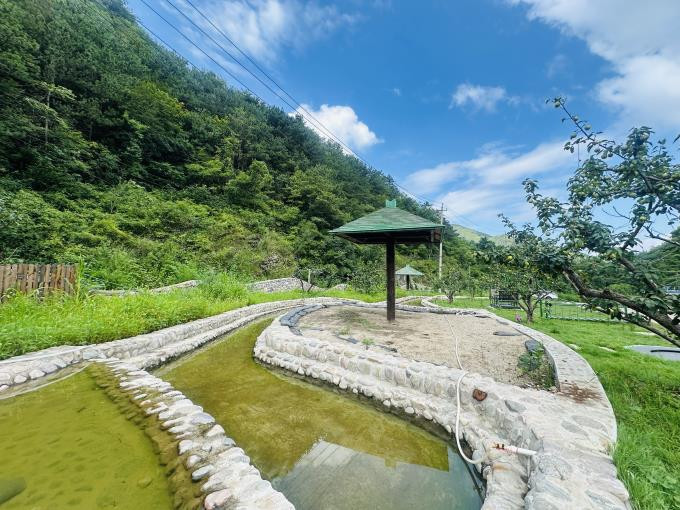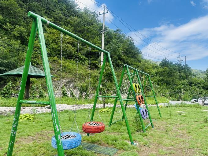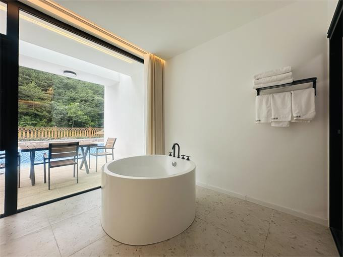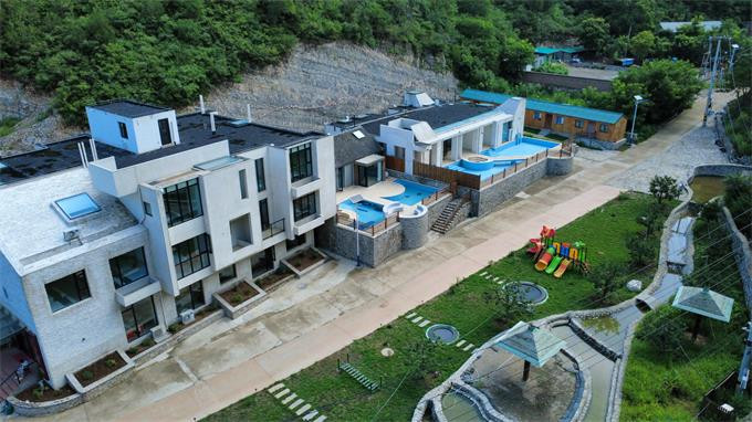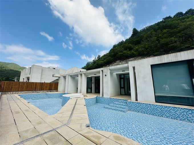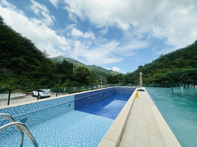 欽山依居藏于天津蓟州区溶洞旁的群山怀抱中,是一处能让人暂别城市喧嚣的高端民宿。四面环山的格局,让这里成了天然的静谧港湾——推窗便是层叠的绿意漫入眼帘,低头可见潺潺流水绕院而过,夏日的暑气在此消散,只剩清润的山风拂面。民宿令人眼前一亮的莫过于那方与山野相融的无边泳池,池水倒映着蓝天白云与苍翠峰峦,随手一拍便是嵌在自然里的惬意画卷。带娃家庭尽可卸下疲惫,丰富的儿童游乐设施构成专属嬉闹天地,滑梯、沙池、益智区一应俱全,家长们尽可在一旁的躺椅上慢品清茶,享受“躺平式带娃”的自在。