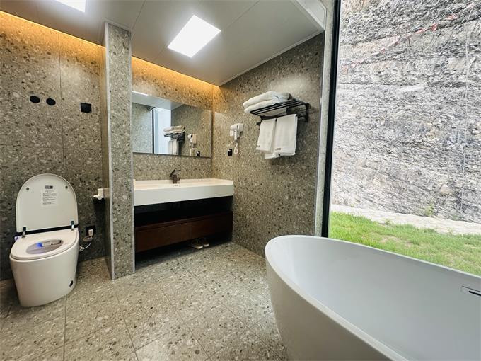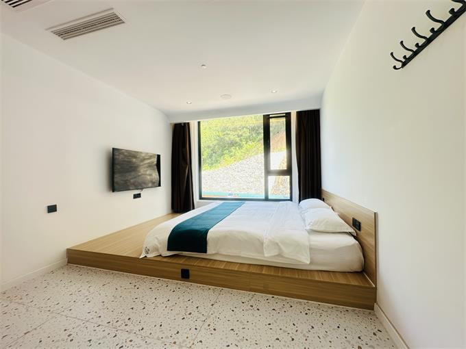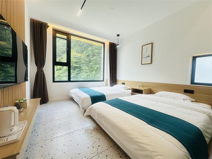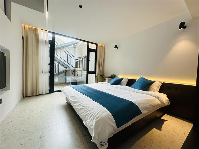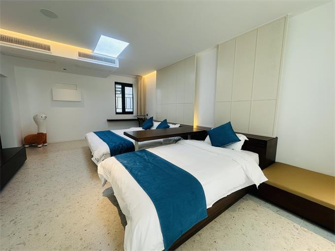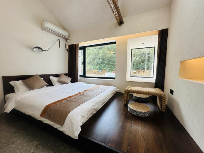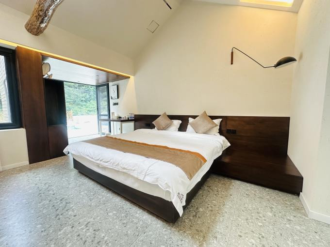 房间设施:20多间客房涵盖大床房、标准房、亲子房等多种类型,更有独栋小院藏于绿荫间,无论是小家庭遛娃、多户结伴,还是公司团建,都能找到合心意的落脚处。房间设施:大床房(3间)可住2位,1.8m*2m舒适大床,独立卫浴,独特山景,投影+智能设备,静谧入睡。标准房(7间)可住2位,1.5m*2m双床,独立卫浴,简约整洁,配电视+书桌,适合好友/同事同住。亲子房(4间)可住3-4位,2m*2m大床+1.5m儿童床,独立卫浴+儿童玩偶,安心守护。独栋小院1号可住6-8位,含3间大床房,私人泳池,独立卫浴,麻将室。2号可住14-16位,含三间大床房,一间亲子房,带独立庭院+私人小露台+独立泳池+麻将室+浴缸适合多家庭结伴或小团建,以上房型均配备全屋智能设备。