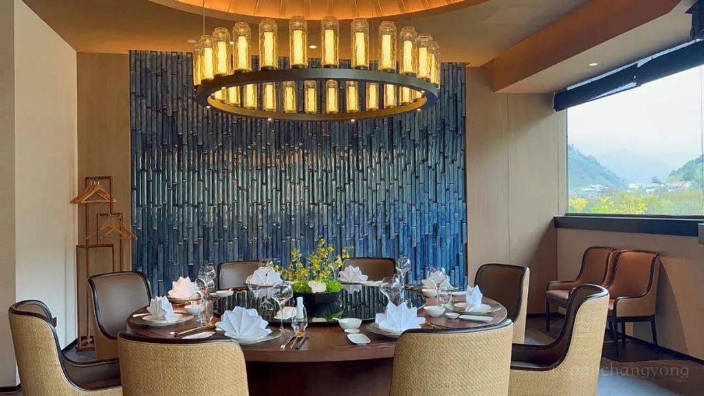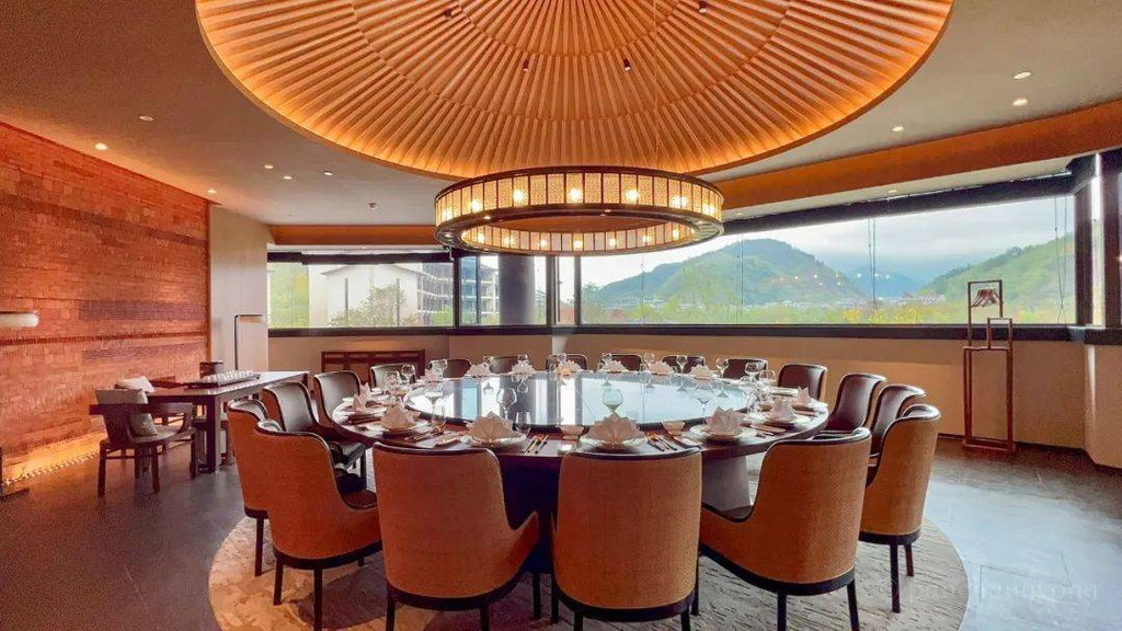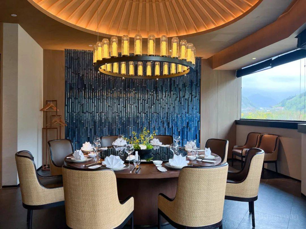 包含天目山本地特色与东南亚泰国美⻝。大面积的落地窗,让宾客们视野开阔,就餐之余欣赏窗外层峦叠翠的山景。