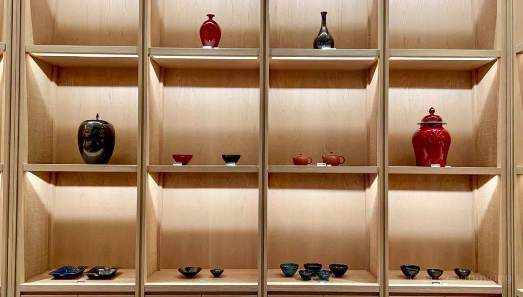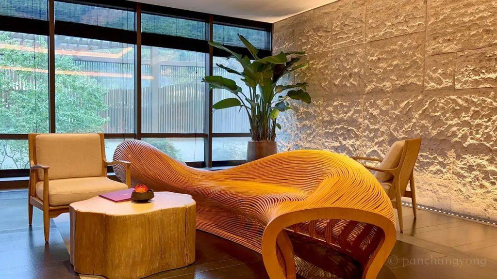 酒店前台的背景墙采用陶瓷制作的竹子造型,而天目盏艺术品沿用到了酒店的各个区域。前台旁边还有一间陈列各种天目盏的空间,在这里我似乎读懂了“一只茶盏可换一座城池”的意思。
