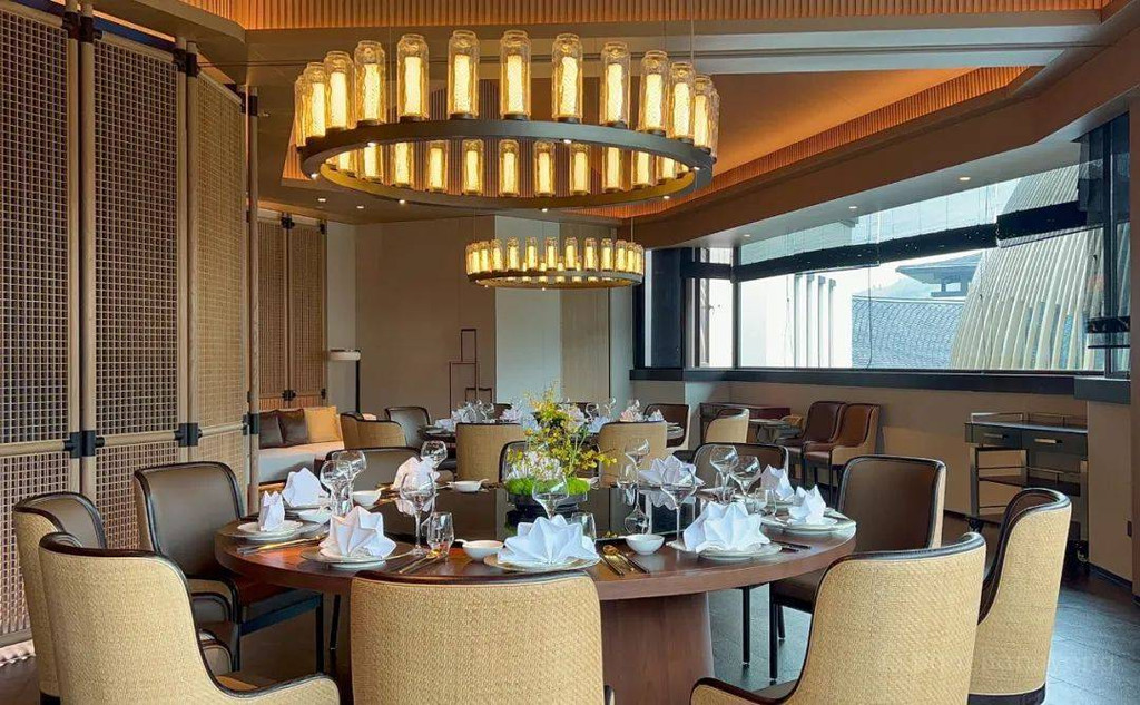 酒店还特设5间豪华包厢,雅名:见山、掌楸、竹月、春柳、常云。最大的包厢可容纳20人,均选用当地新鲜食材,餐厅主打本地菜和杭帮菜,宾客可以在此享用到美味的菜肴。