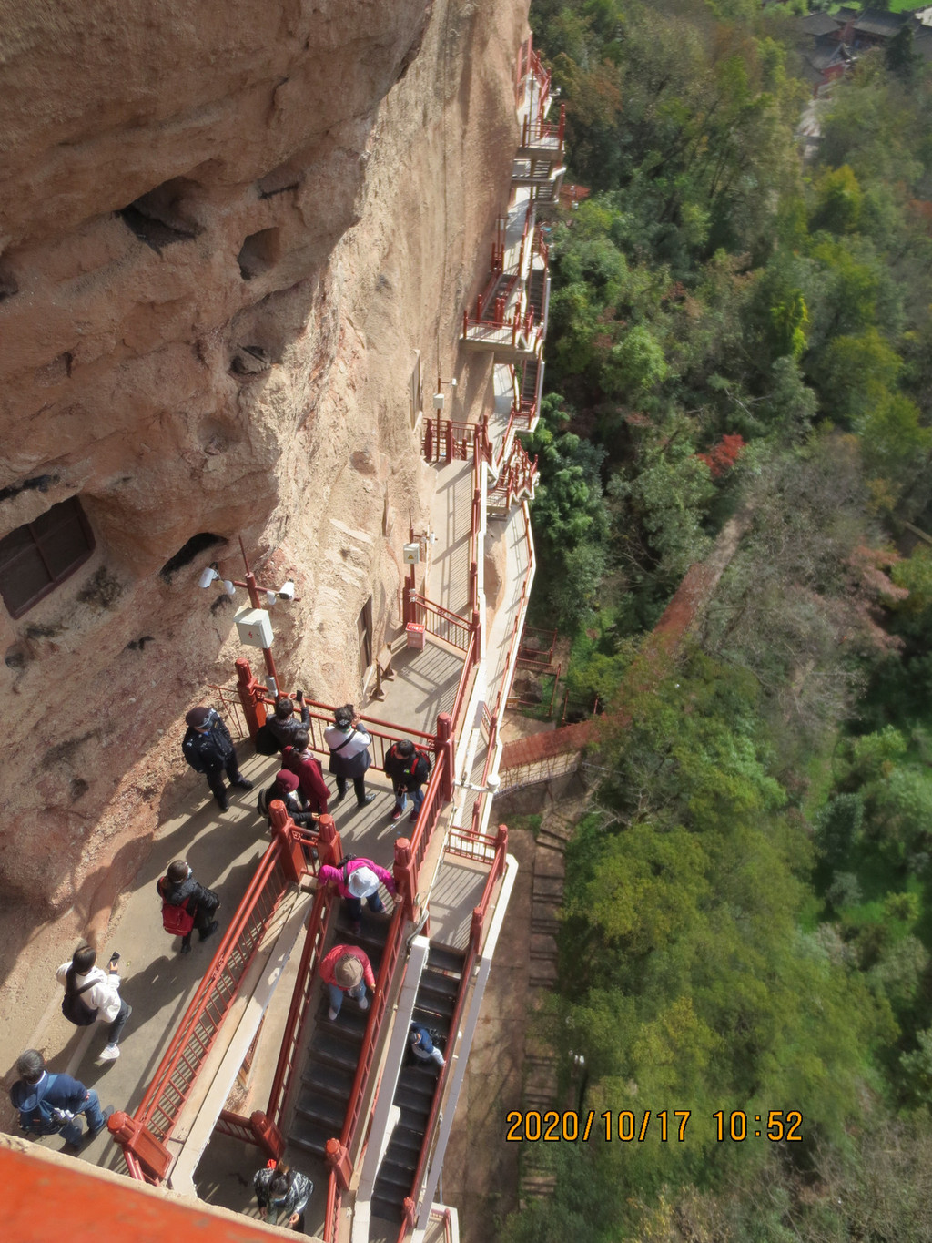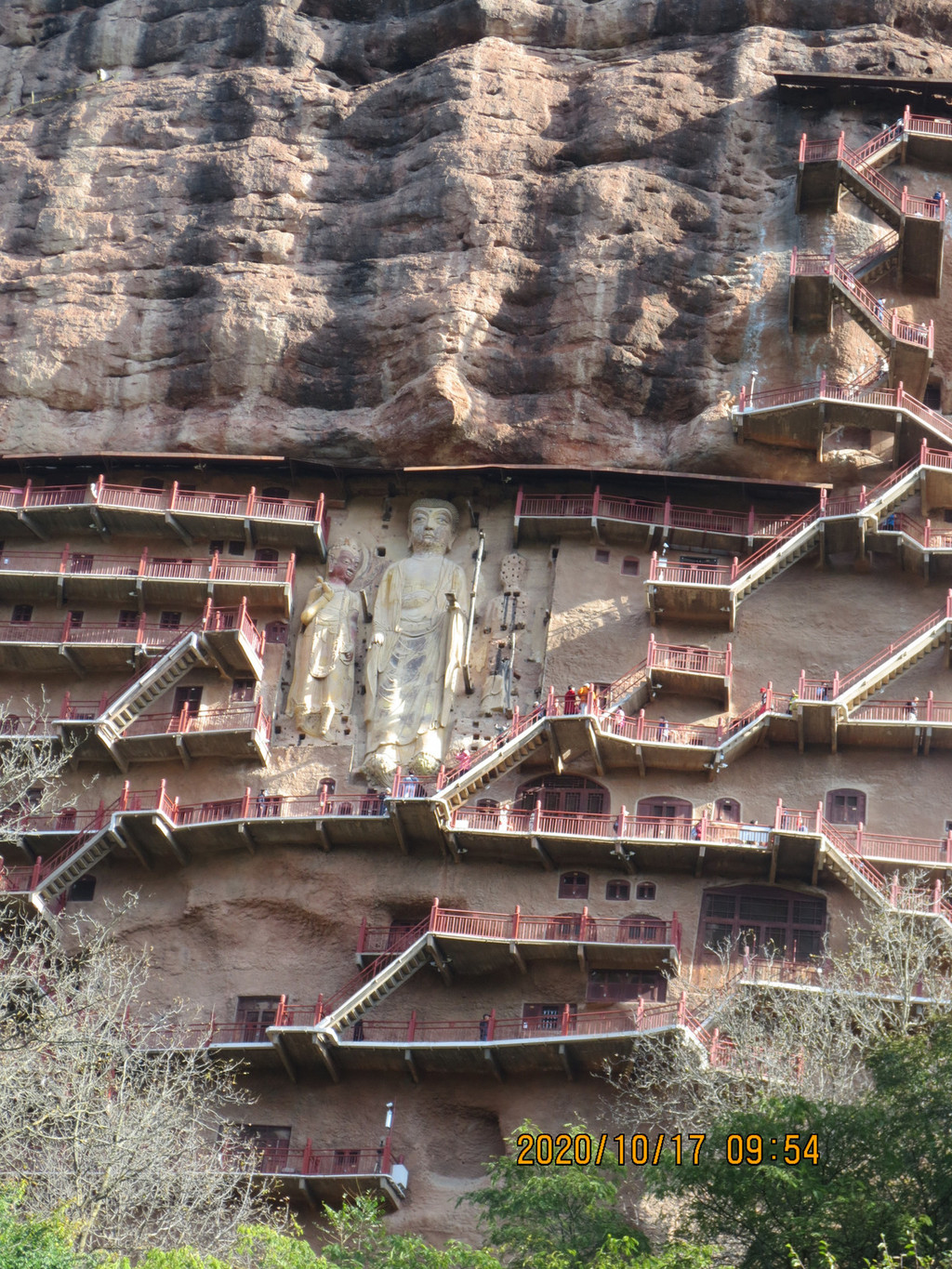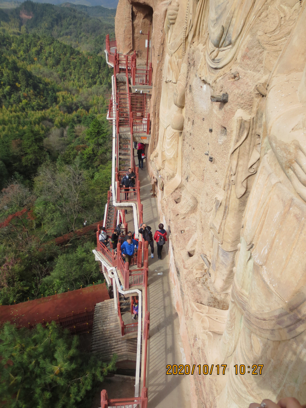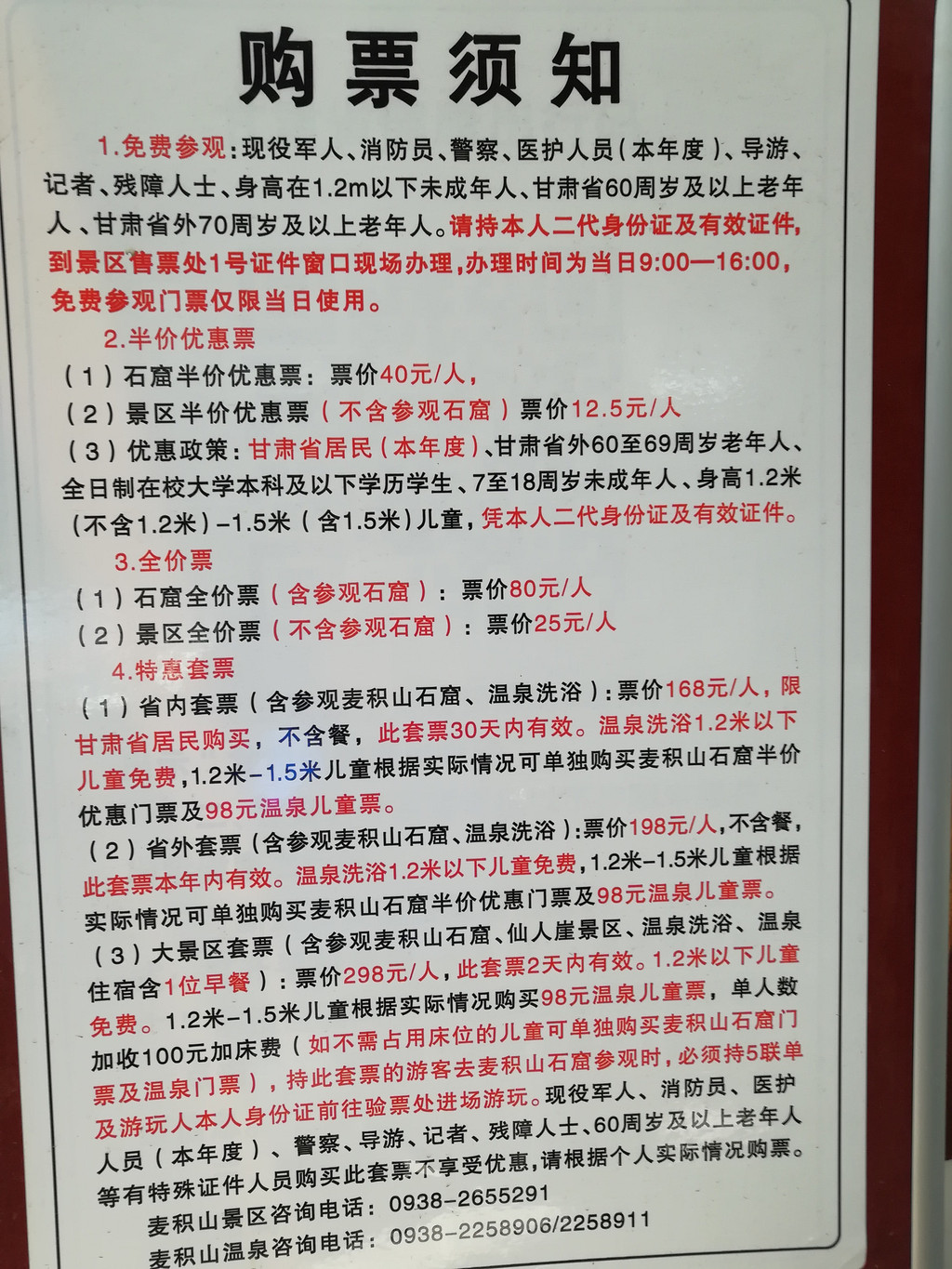 麦积山石窟,从天水市区到景区去,可选择公交车和打的,以我们住的地方为例,公交车1路(在附近迎宾馆或百货大楼站)上车到天水南站转34路到景区,时间大约40分钟至一个半小时,也可在南站转37路去仙人崖,再坐景交车到麦积山石窟,这样比较方便,因为先到麦积山石窟再去仙人崖,下午回来只有公交车了,很少有出租车,因为那边去的人不多。我们为了方便是打的去的,到麦积山石窟讨价要120--150元(网约车也在这个价位),后有同酒店二人去高铁站(天水南站),她们20元我们100元,用时40-50分钟吧。