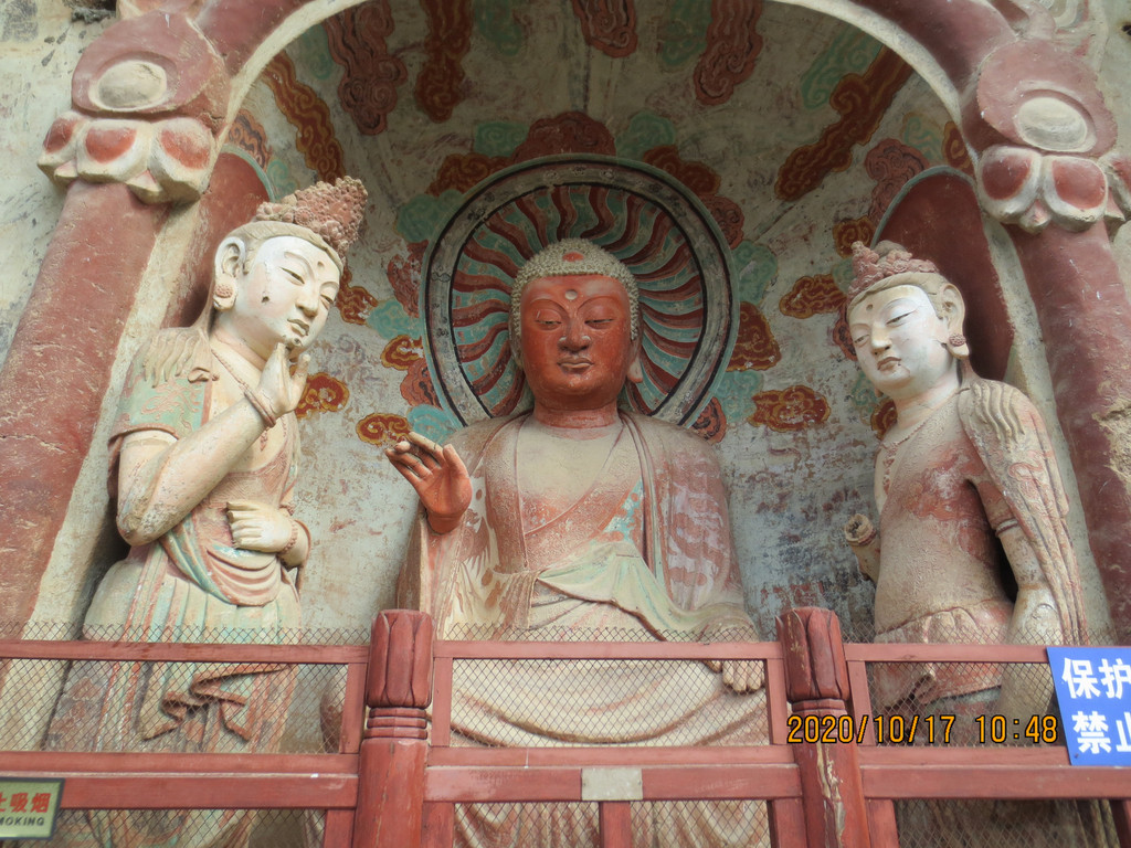 到天水市主要是为了去游览麦积山石窟,麦积山位于甘肃省天水市麦积区,距市中心45公里,是小陇山的一座孤峰,高142米,因山形似麦垛而得名。麦积山石窟凿于十六国后秦时期,经北魏、西魏、北周、隋唐、五代、宋、元、明、清等10多个朝代的不断开凿、重修,遂成为仅次于敦煌莫高窟的我国第二大艺术宝窟,现存194个窟龛、7000多尊造像、1000平方米壁画,被誉为东方雕塑艺术陈列馆。与敦煌莫高窟、山西云冈石窟、河南龙门石窟并称为中国四大石窟。是世界文化遗产,国家AAAAA旅游景区,国家重点风景名胜区,国家森林公园,国家地质公园,全国重点文物保护单位。麦积山风景区由麦积山、仙人崖、石门、曲溪、街亭温泉五个子景区180多个景点组成,拥有丰富多样的生物类型和物种,被称为“陇上林泉之冠”,具有深厚的旅游价值,是丝绸古道黄金旅游线上的一颗耀眼的艺术明珠和最具潜力的旅游胜地。