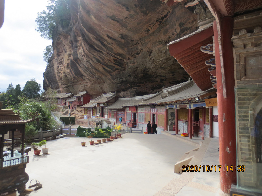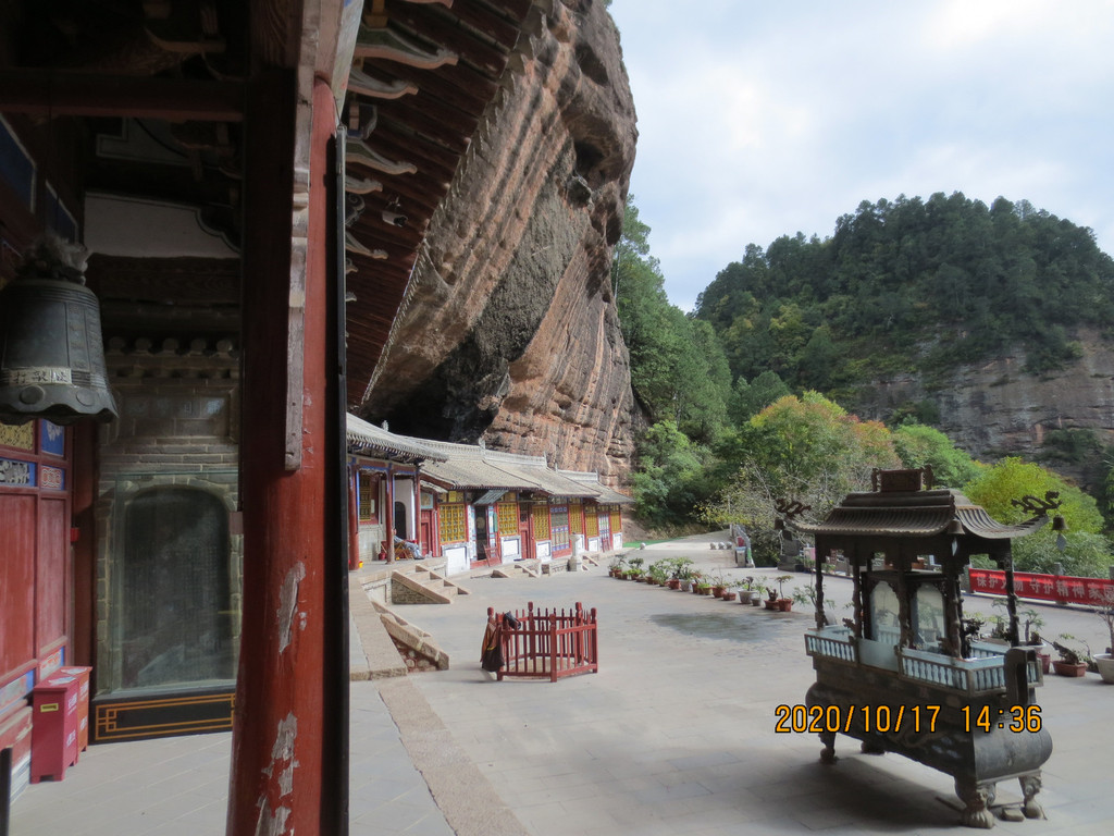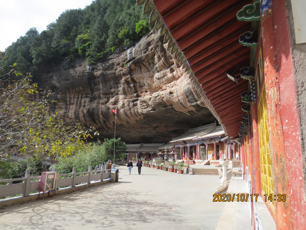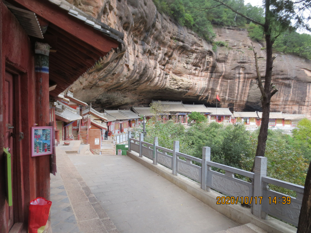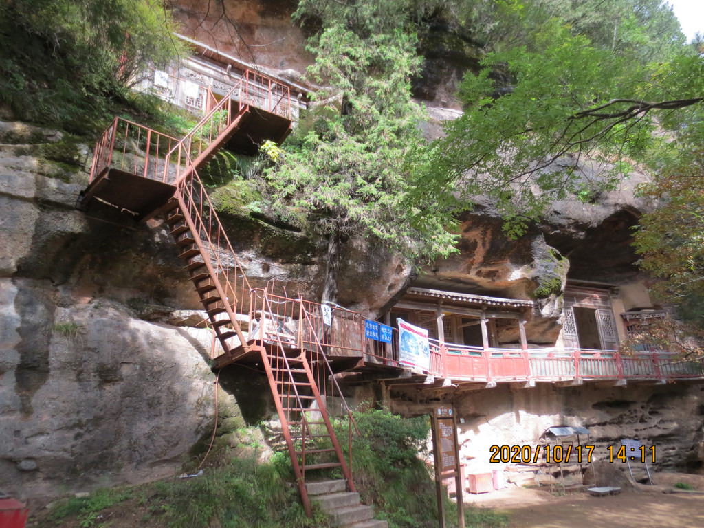 仙人崖景区飞崖寺院群,走到照片左边头上,就是下山的路口,是第一条路。游览时间2小时差不多了,我们回市区是乘仙人崖景区门口的37路公交车,7元票价,是到天水火车站的,它离市区比天水南站还远,一个小时后司机叫我们在火车站前几站下车转1路公交车,3元到市区百货大楼站,到火车站下去转乘1路车还要远。