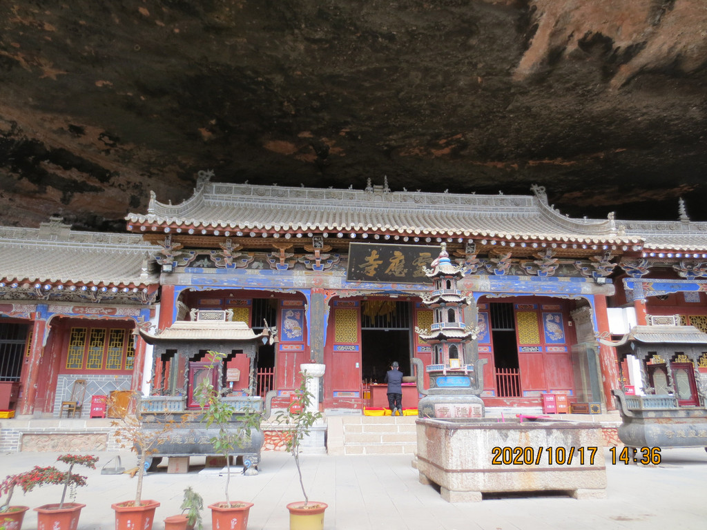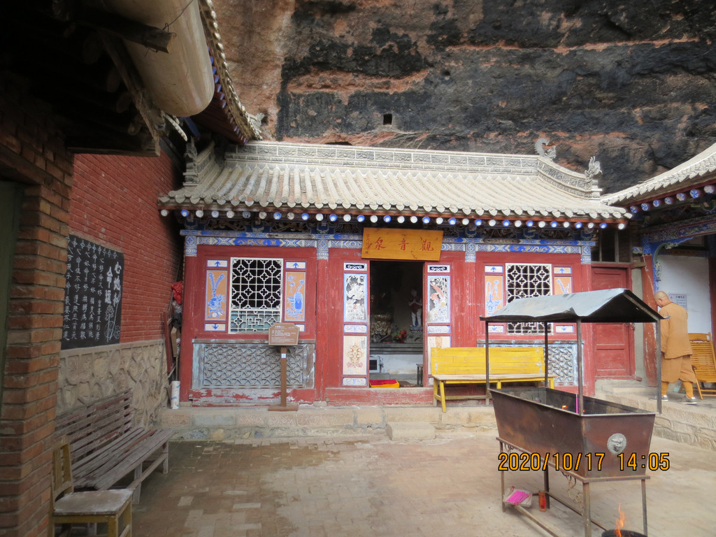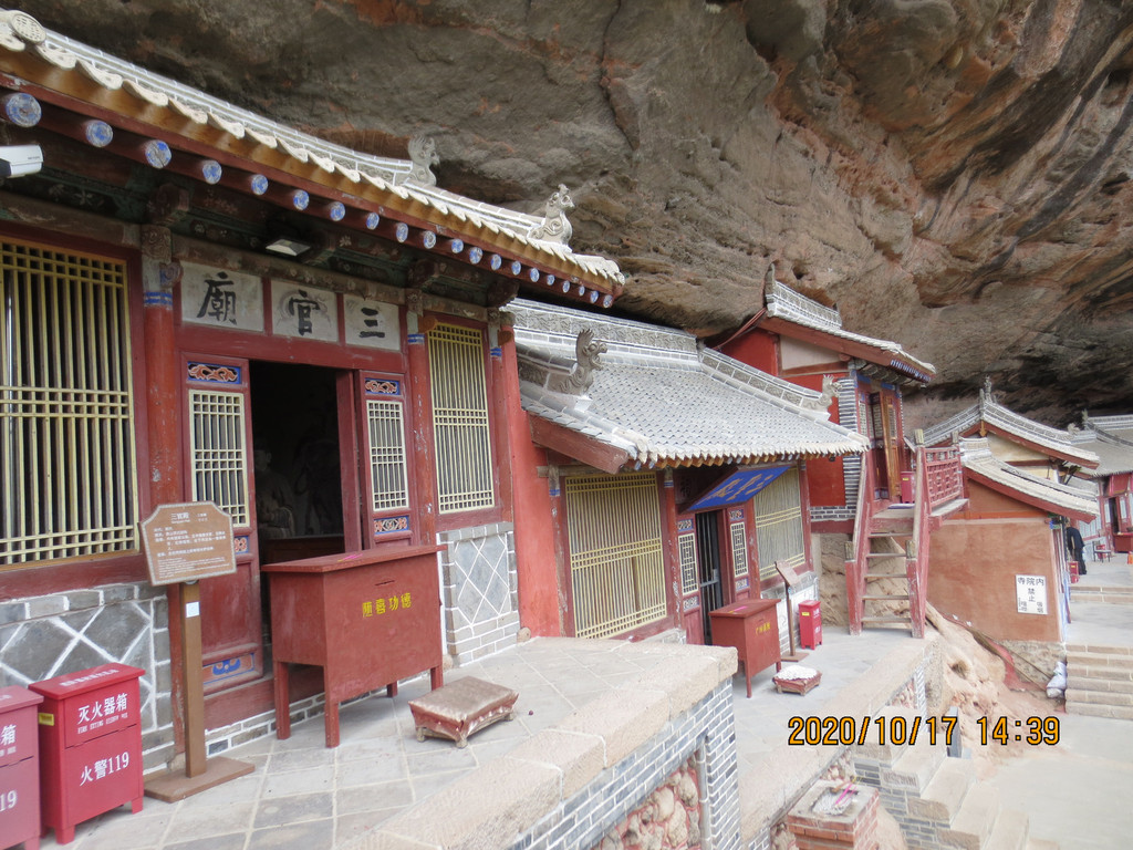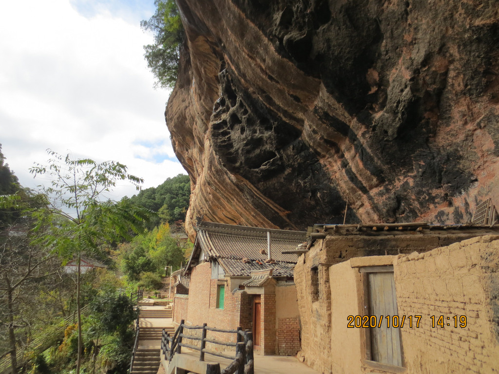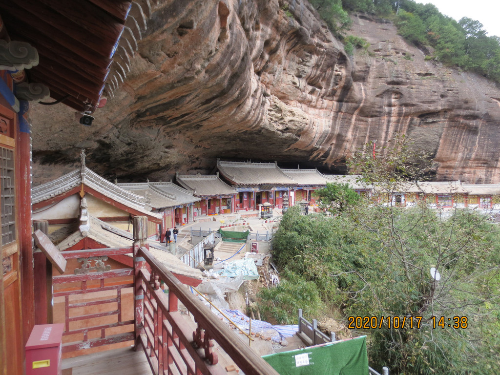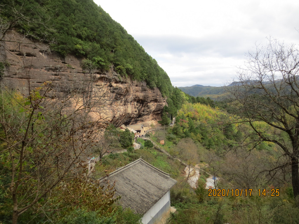 仙人崖景区飞崖寺院群,走到照片左边头上,就是下山的路口,是第一条路。游览时间2小时差不多了,我们回市区是乘仙人崖景区门口的37路公交车,7元票价,是到天水火车站的,它离市区比天水南站还远,一个小时后司机叫我们在火车站前几站下车转1路公交车,3元到市区百货大楼站,到火车站下去转乘1路车还要远。