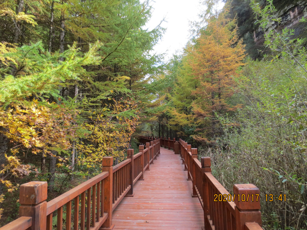 从湖边走没什么景,就是看混浊的湖水和这种木栈道的山景。唯一好处就是不累。
