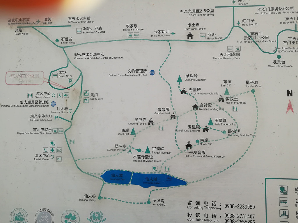 游完麦积山石窟,简单吃了点中饭,又去仙人崖景区,仙人崖位于天水麦积山风景名胜区朱家后川村,相传此处过去常有高人隐居于此修行,故名仙人崖。仙人崖山巍、水秀、崖俊、林密,自然风景秀丽;人文景观仅次于麦积山景区,寺观、庙宇、窟龛多建于高耸的峰顶或凸凹的飞崖间。自南北朝以来,历代在这里均有建筑和雕塑造像,遗憾的是多被损毁,遗存甚少。