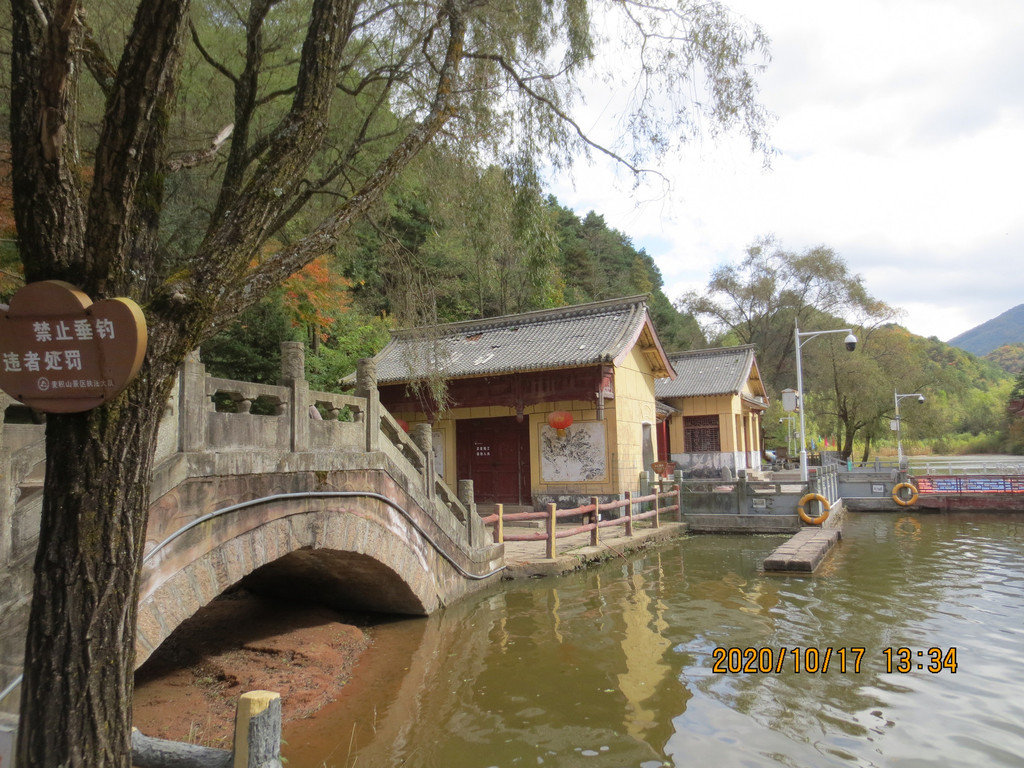 到这桥后,应该往左边的南崖方向走,我们是在桥上碰到一人问路,她说都可以上山一样的,我们就过了这桥沿着湖边走了,上山后才知道应该走南崖上,那边的千手观音殿、卧佛洞、玉皇殿等几个景点都错过了。