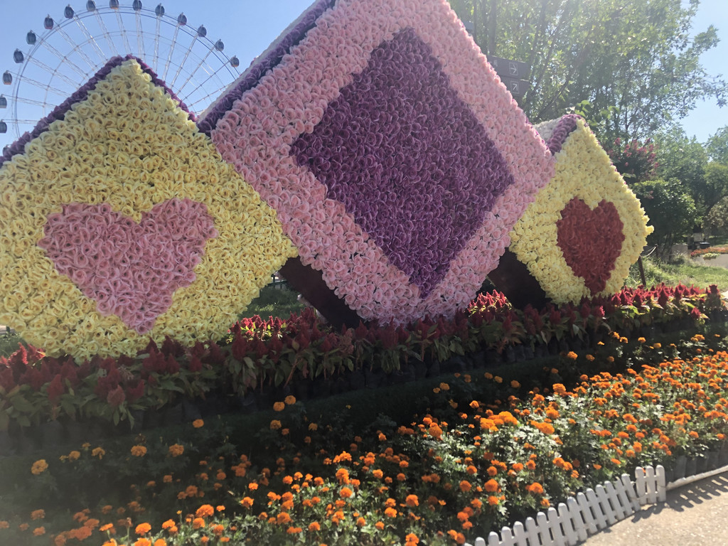 到这个地方才知道这叫婚庆广场,由金色浪漫雕塑,草坪花卉等构成。据说,金色玫瑰象征着永恒的爱情,皎洁的月亮象征着爱情的纯洁与浪漫。广场周围嘉树呈林,花香馥郁,草覆绿毯。多少新眷玉人,来此见证,宣布彼此的幸福,游到此处,情思缱绻,乐而忘返!