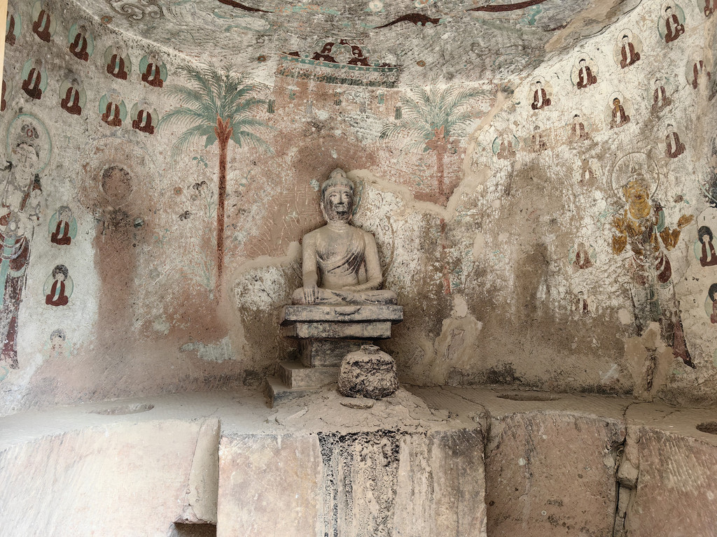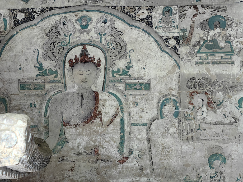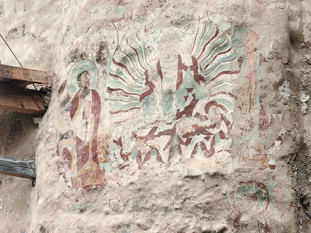 炳灵寺石窟的壁画雕像都很精美,但损毁也很严重。我们沿栈道走一圈,用时1个多小时。参观完石窟,我们继续开车前往兰州,傍晚抵达兰州。