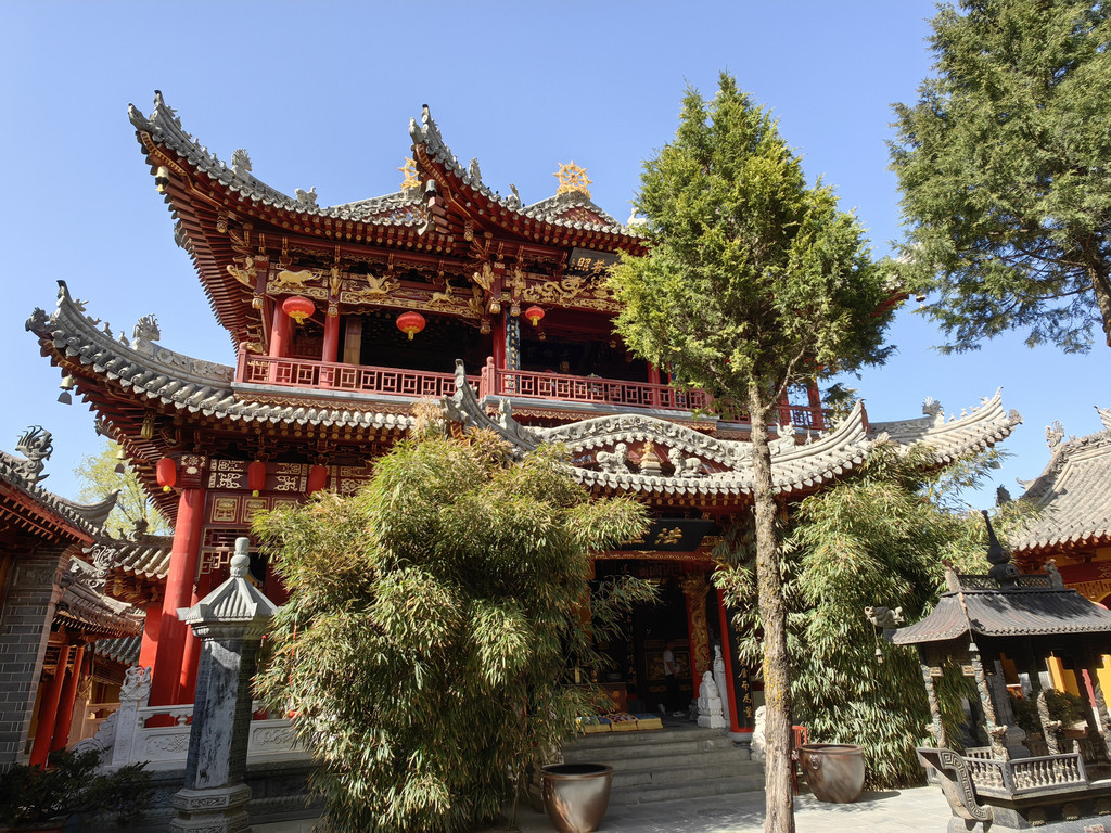 皇城建筑群雄踞马鬃山之巅,始建于北宋乾德年间(963-967年),为崆峒山道教宫观之首,楼台殿宇古朴典雅、凝重精巧、规模宏大、错落有致,被誉为“道教古建筑艺术之瑰宝”。