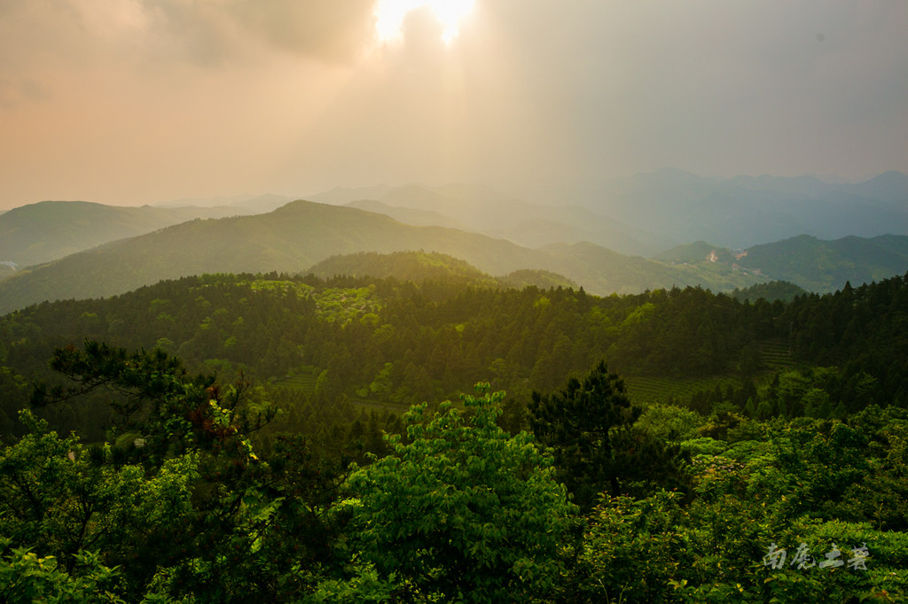 登上归云亭眺望,视野开阔,可以看到西园杜鹃林和远山的叠翠,尽管云雾遮挡了落日,依然可以感受华顶的巍峨与96%森林覆盖率的苍茫。