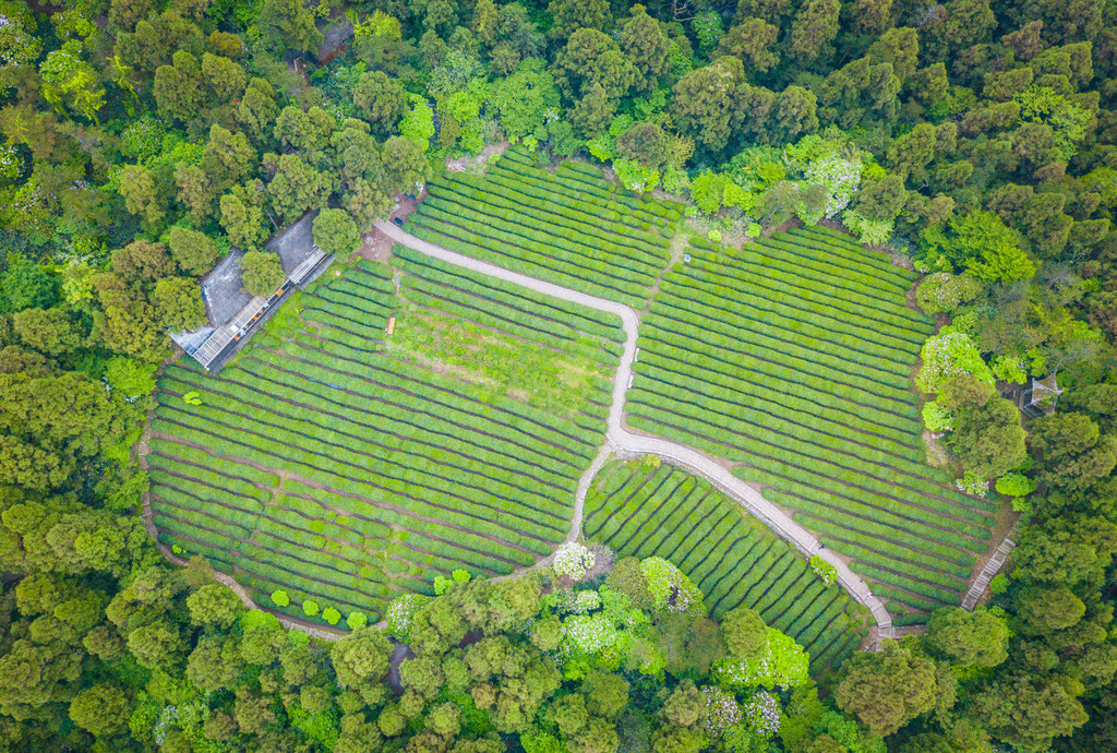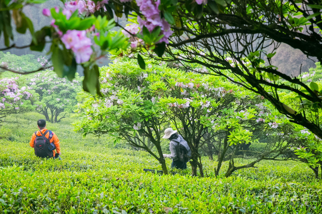 沿途杜鹃古树生长在茶园周围,或是错落在茶园阡陌之间,布衣的茶农采茶于浅紫色的杜鹃花下,夕阳余晖,意境悠远。 华顶云雾茶名声在外,早年茶种经日本临济宗始祖荣西,带到日本,由佛缘而结茶缘。