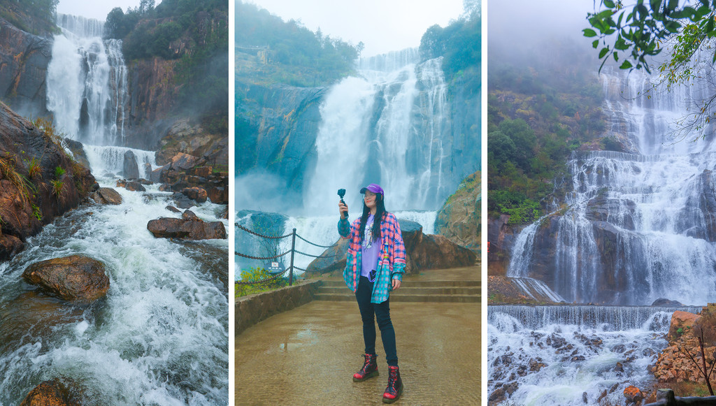 遗憾的是天气不给力,云雾非常的厚,能见度不高,这个总落差 325 米的九阶大瀑布,我目所能及只能是其中的一小段。即便如此,也是非常的壮观啦!