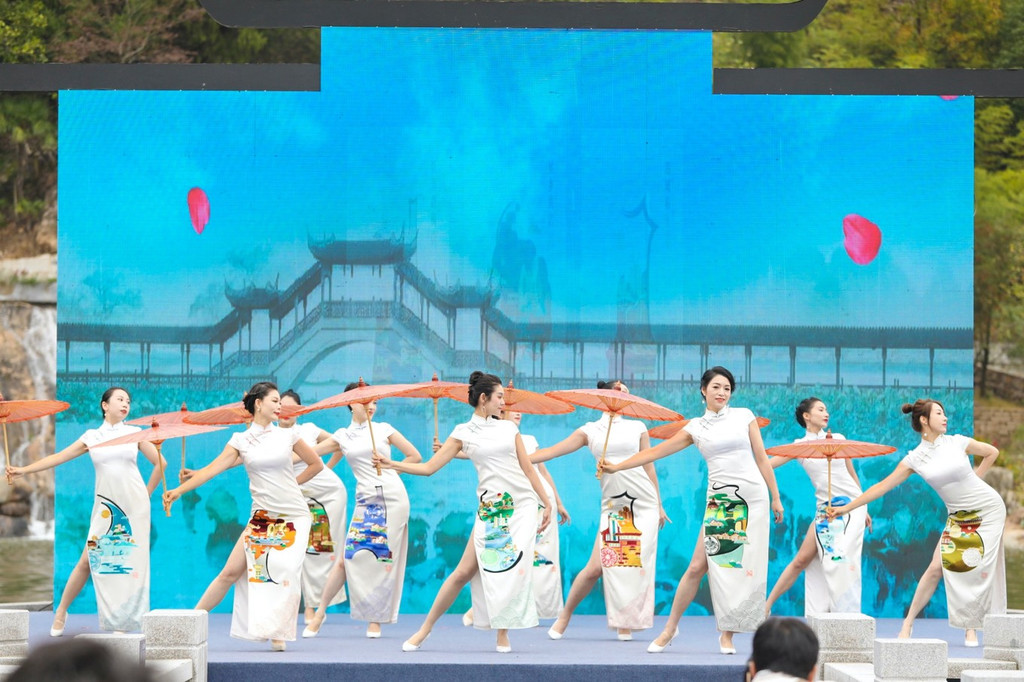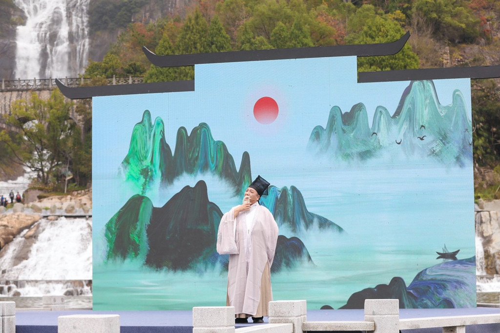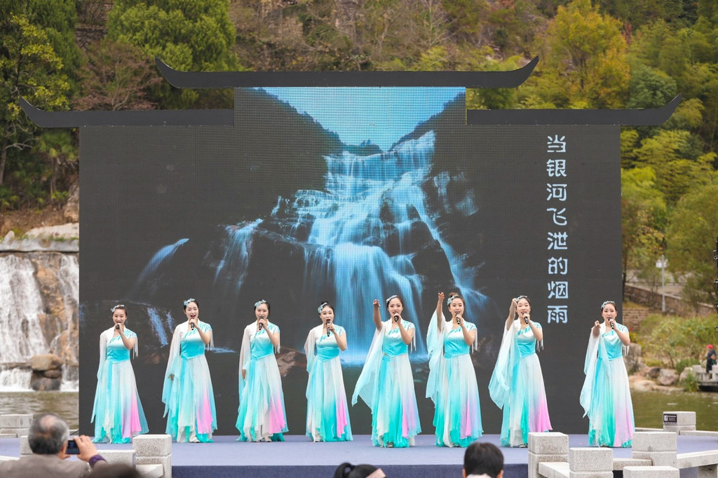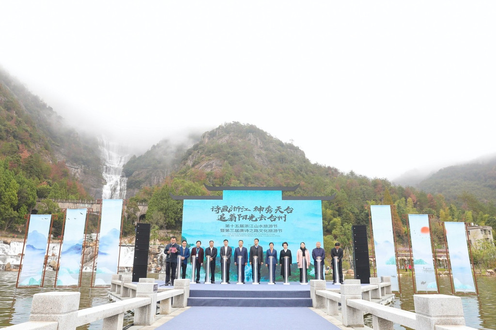 第十五届 浙江 山水旅游节暨第三届唐诗之路文化旅游节在 天台 山大瀑布景区九龙湖广场隆重开幕