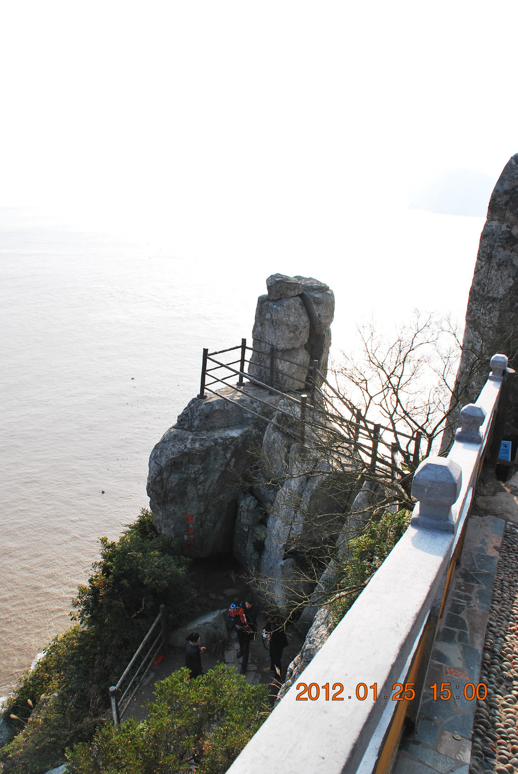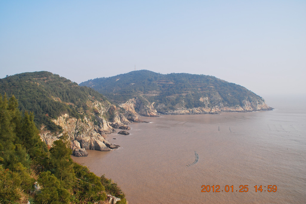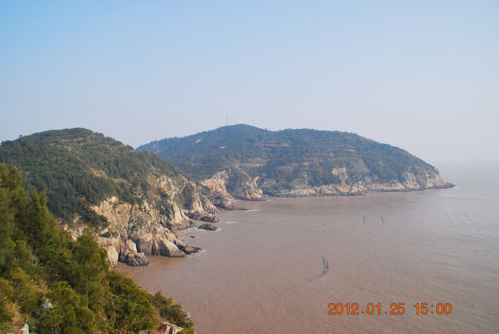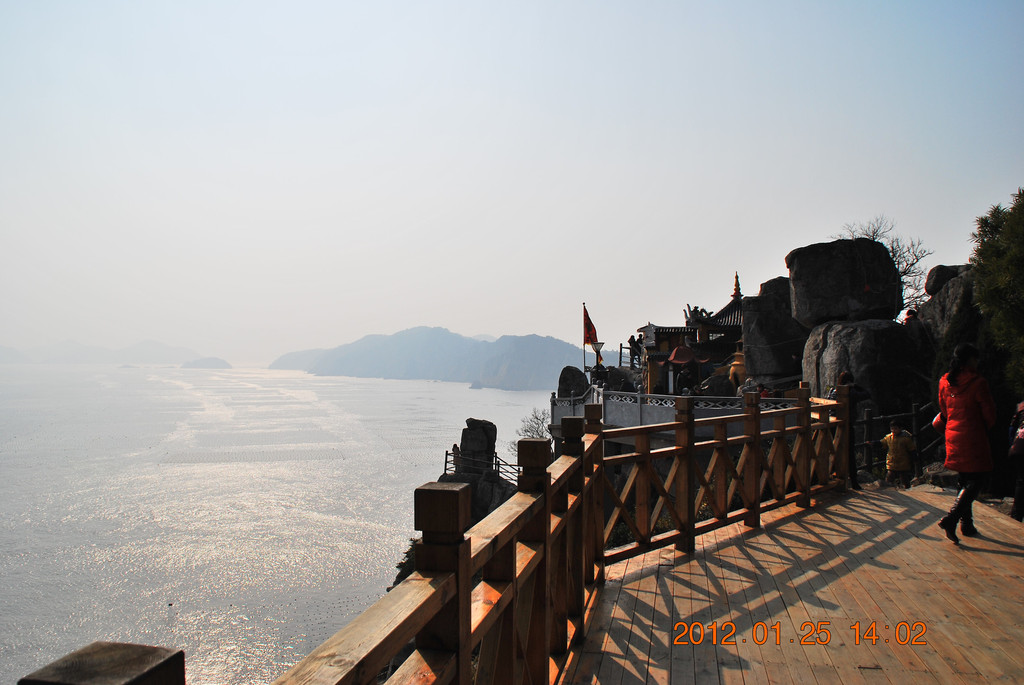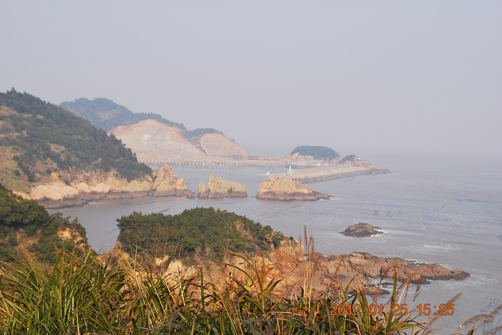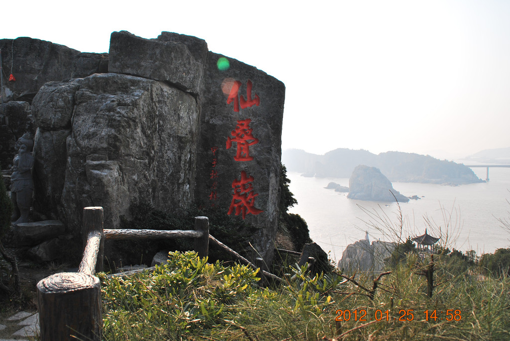 仙叠岩,门票30元。下图中,从仙叠岩拍摄海中的半屏山。