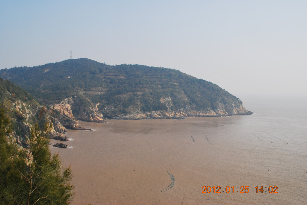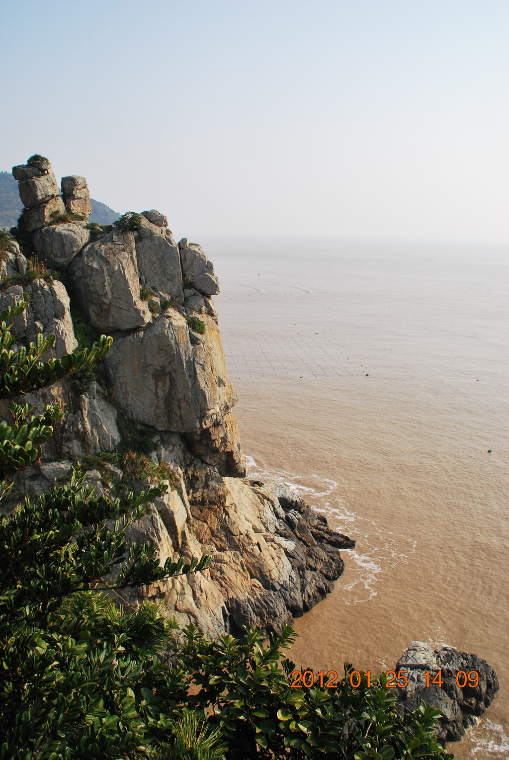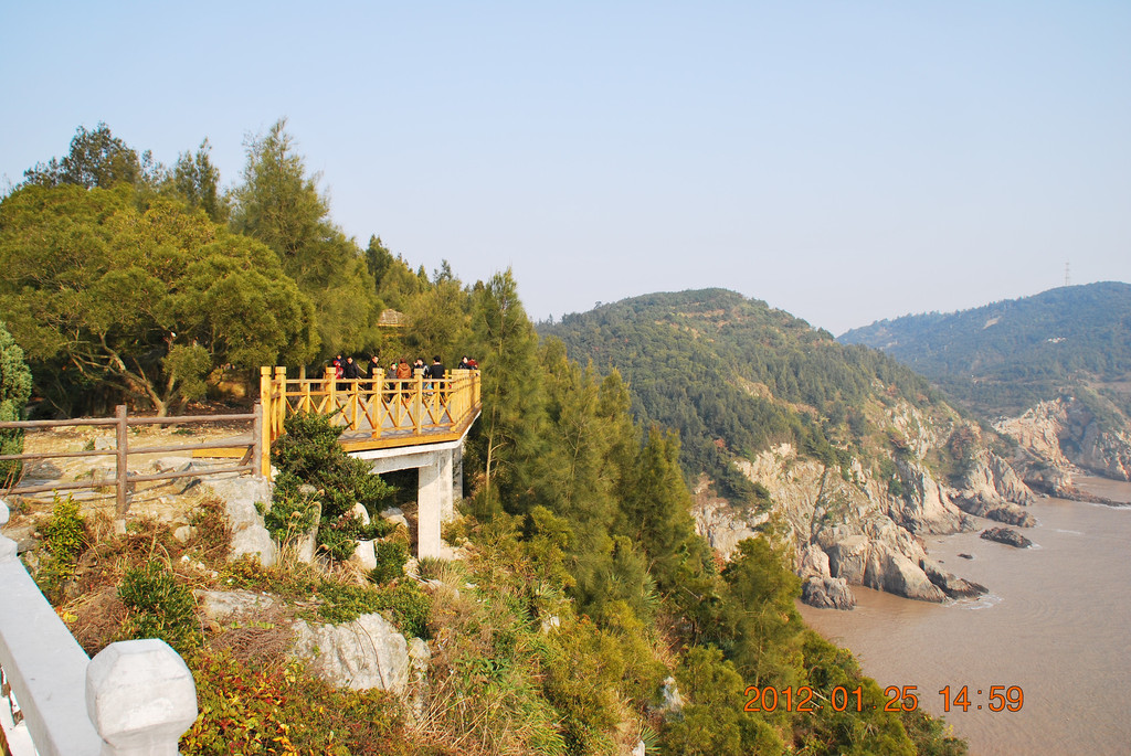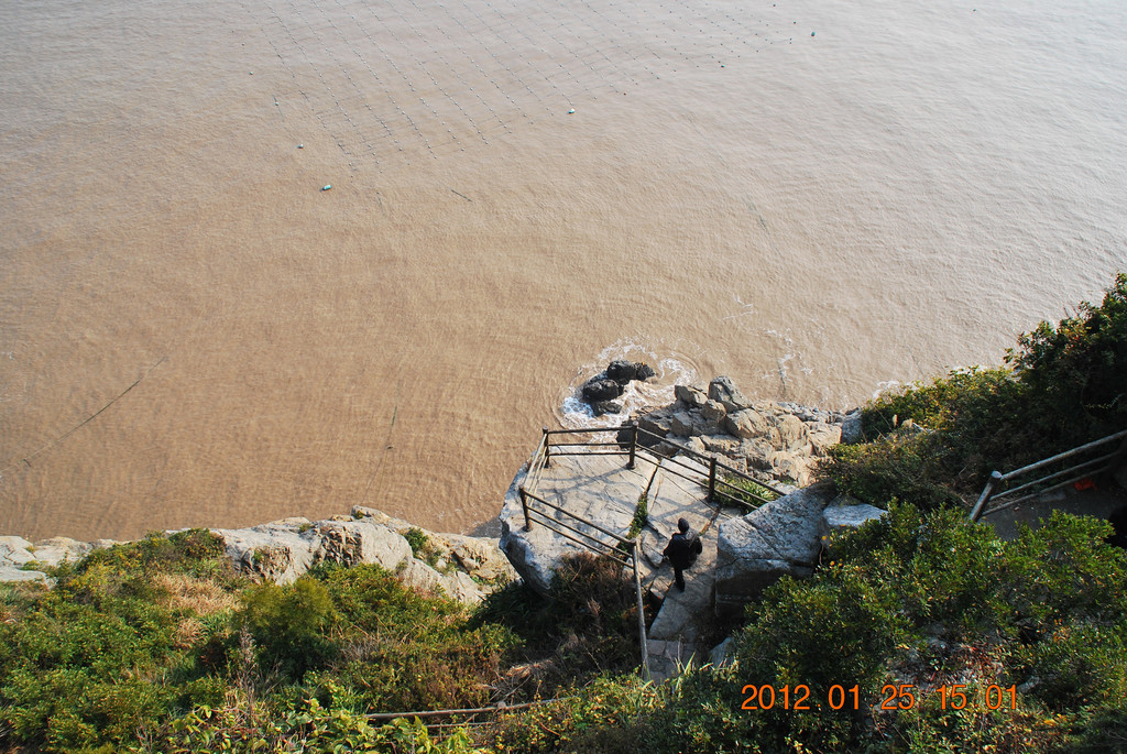 仙叠岩,门票30元。下图中,从仙叠岩拍摄海中的半屏山。