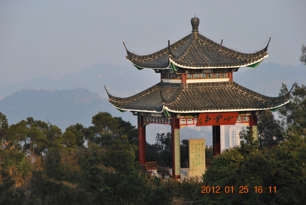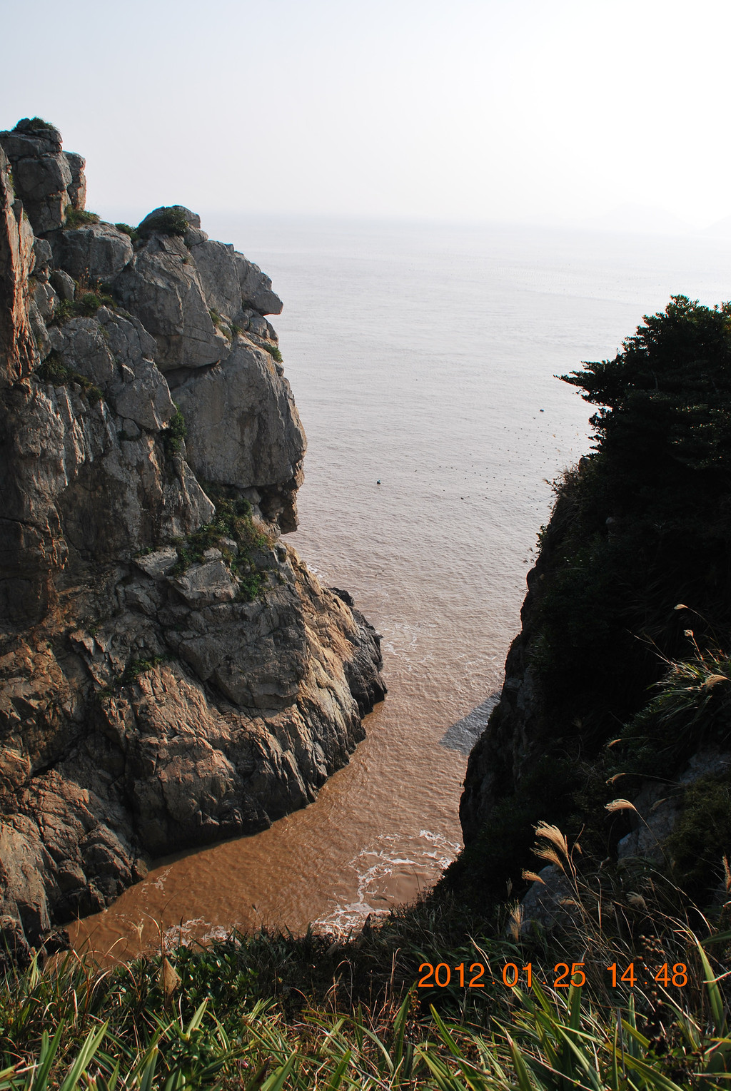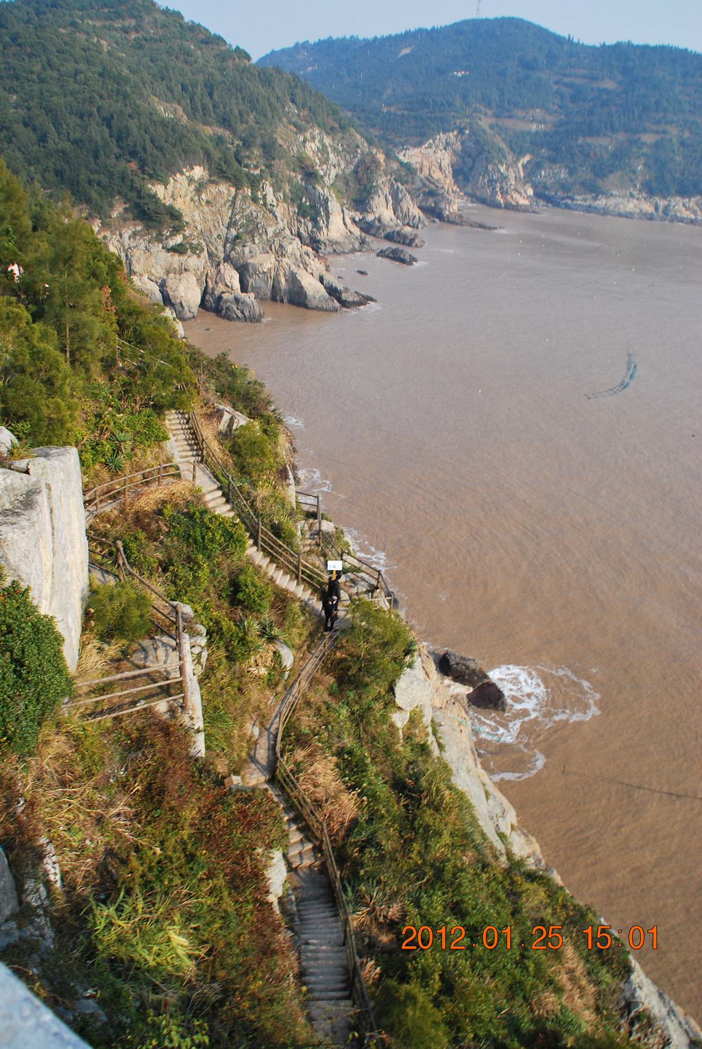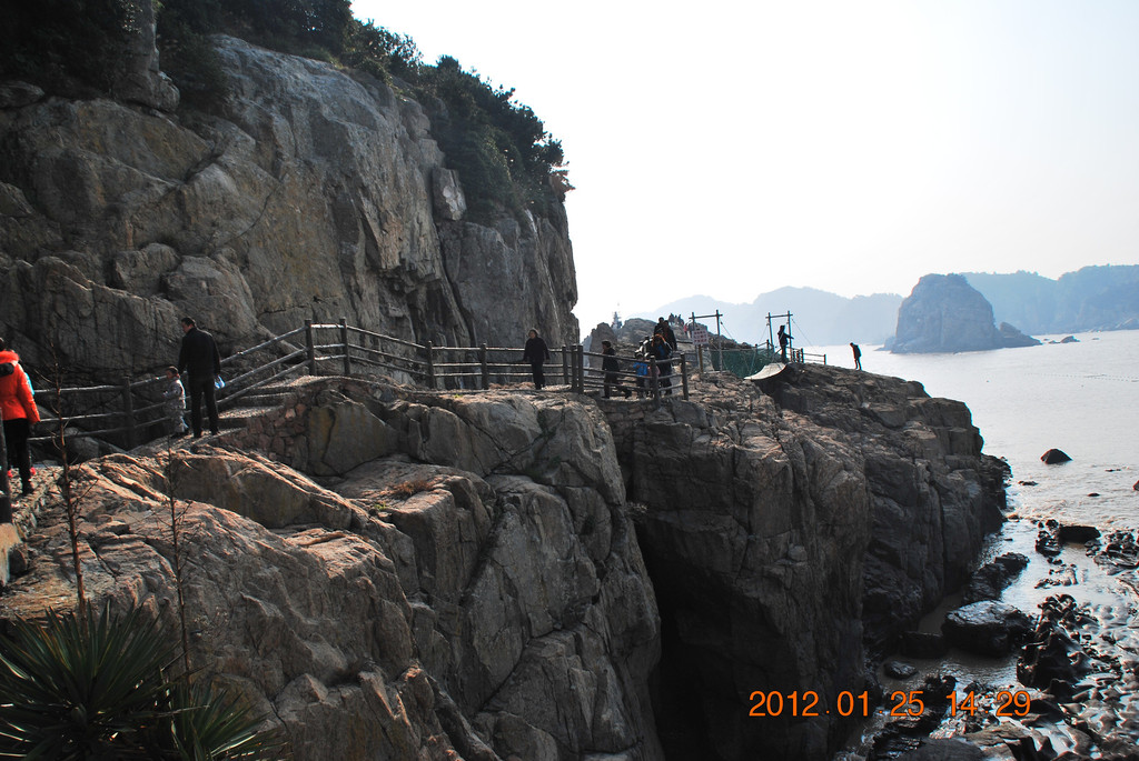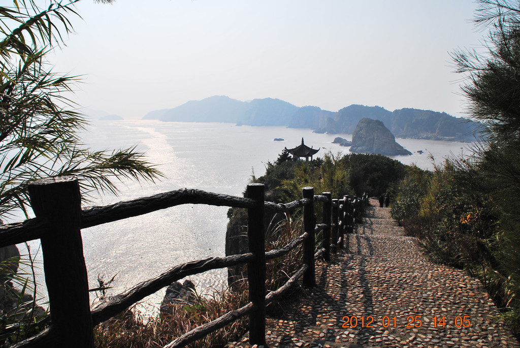 仙叠岩,门票30元。下图中,从仙叠岩拍摄海中的半屏山。