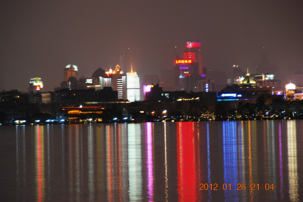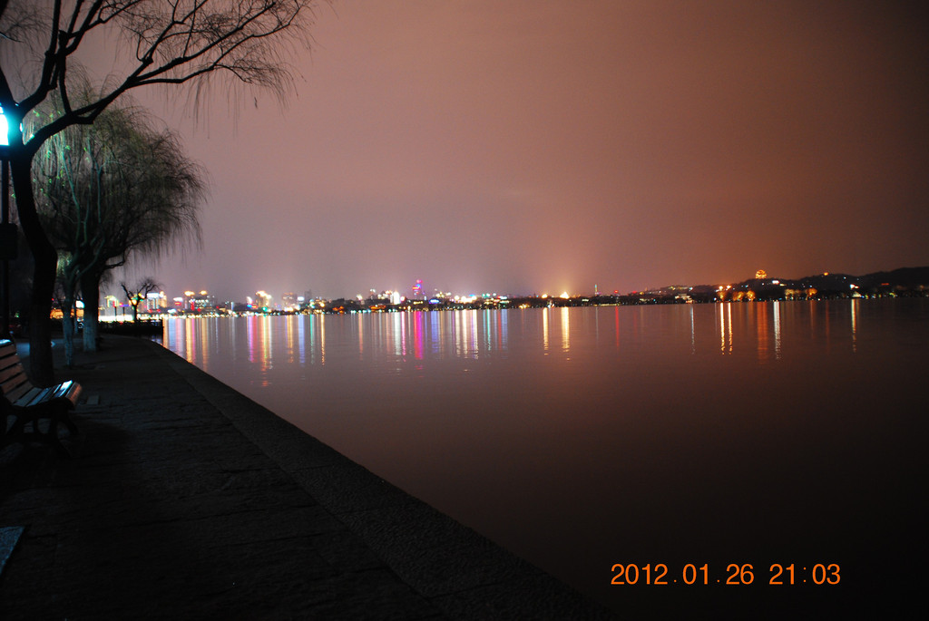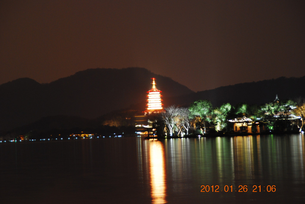 在奎元馆吃过面后,驾车到西湖边逛一圈,拍了几张夜景,可惜缺乏拍摄经验。