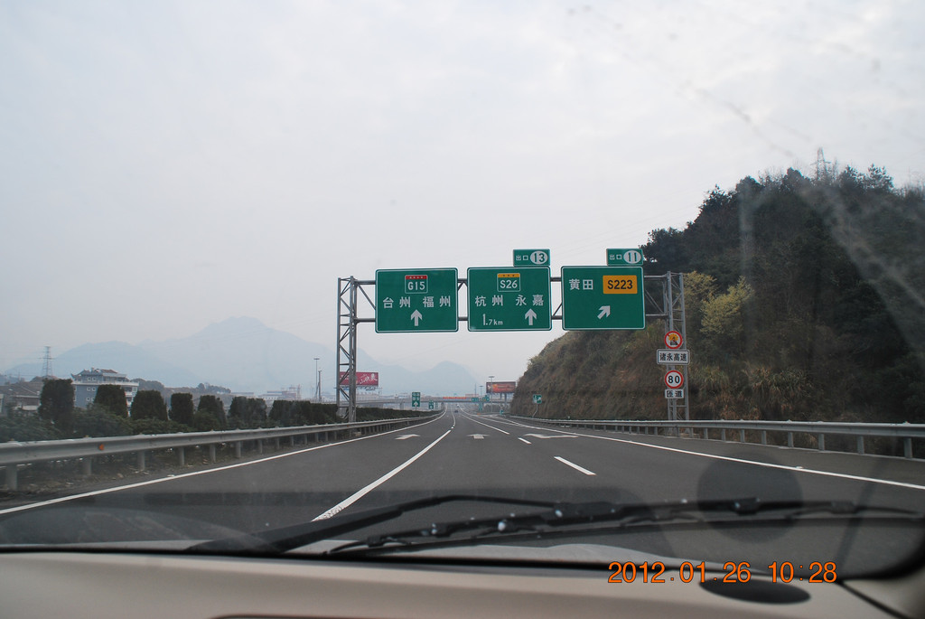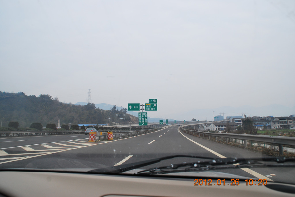 下图摄于金丽温高速上,由此去楠溪江,可再走温州绕城高速,然后拐入诸永高速。