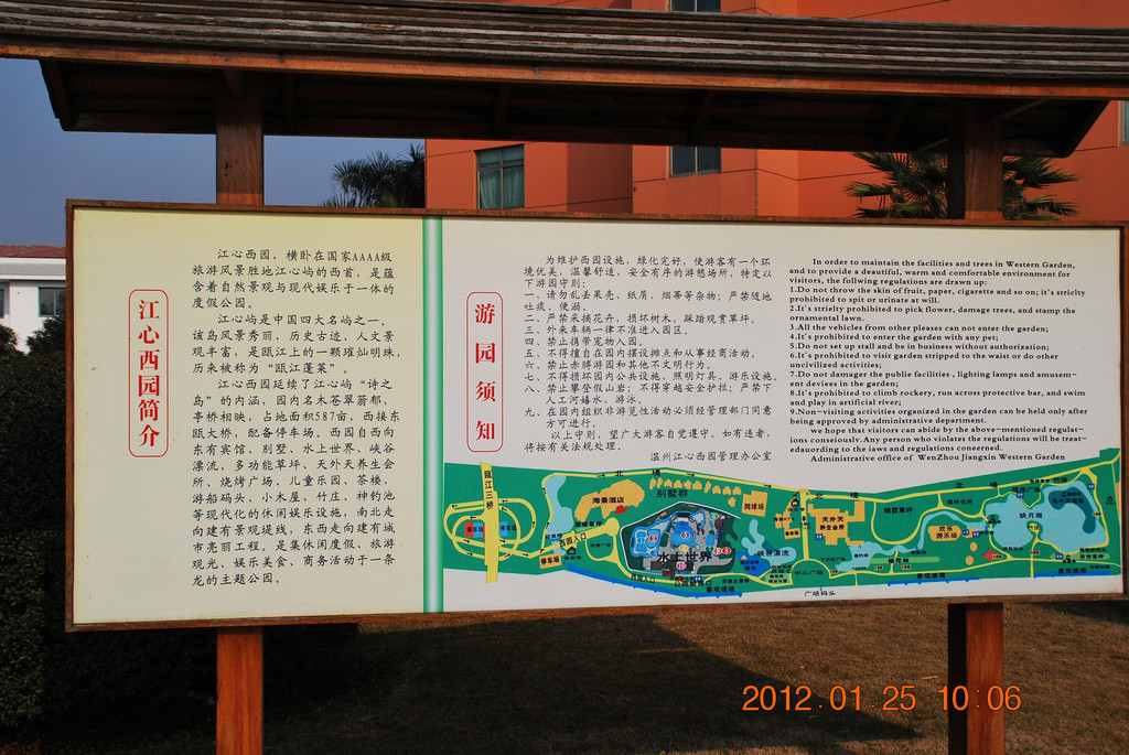 江心西园,门票25元。江心寺位于江心屿的东端,步行估计20分钟路程;坐游览车前往,单程车费10元。