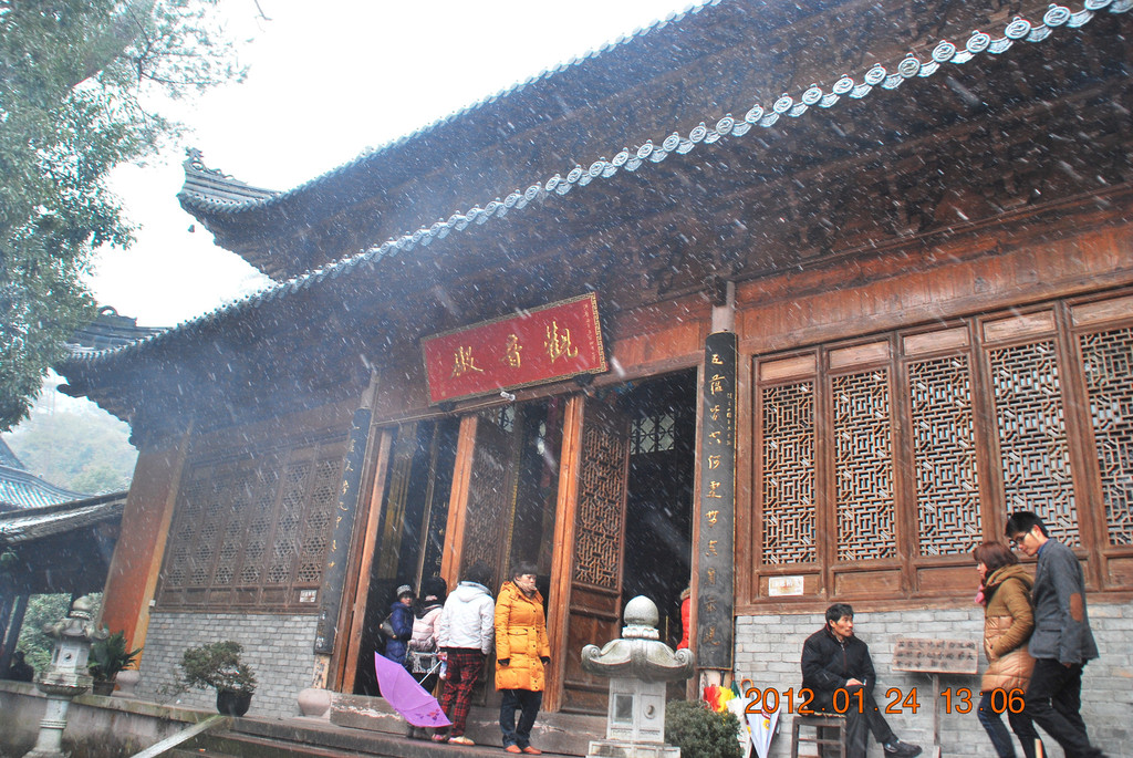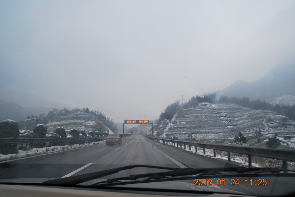 2012年,我再次利用春节长假外出自驾游,且是第一次大年初一出门旅游。说实在的,走亲访友整天吃的兴趣已经不大,节前的聚餐也有过多次,还是外出旅游更使春节有意义。我们本来计划在杭州和绍兴玩几天,但年初一在萧山住一晚后,感觉出游目的地太近,不如自驾游去更远的地方。于是,年初二先去天台县国清寺。然而,计划还是赶不上变化,驾车进入新昌县开始飘雪花,到天台只见银装素裹,估计当地已经下雪多日。考虑到下雪注意行车安全,我们没有走盘山路去石梁飞瀑,而直接前往温州市区投宿。初三,先去温州江心屿,再去洞头县。其中,看到洞头海景,让我感觉不虚此行。初四,游览了永嘉县楠溪江古村落,再驾车走号称浙江最美高速的诸永高速返沪。晚上7点多到杭州,吃过奎元馆的片儿川后,沿西湖边驾车赏夜景,9点半后上高速,赶在12点接财神放鞭炮前回到上海家中。此行全程1372公里。