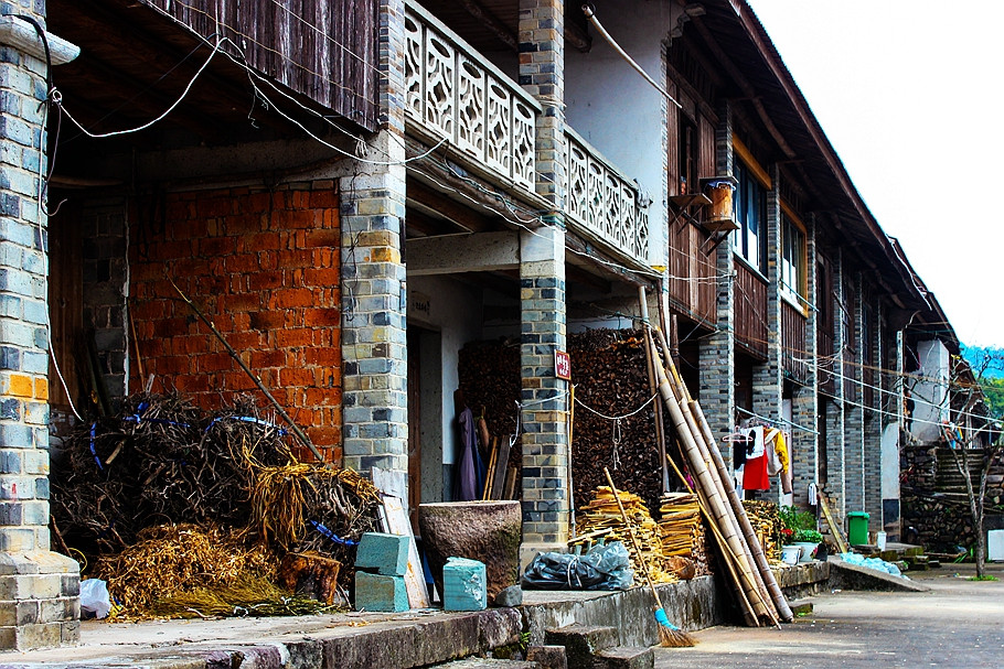 走入村庄,一幢幢房子整齐划一。村里的民房沿山坡而建,二层的砖瓦房与砖木房混杂在一起。