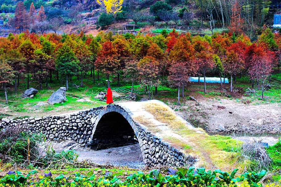 鹅卵石古桥成为了拍摄景点,摄影人一字排开,长枪短炮对着前方行摄,清脆的相机快门声在寒山湖上空回响!
