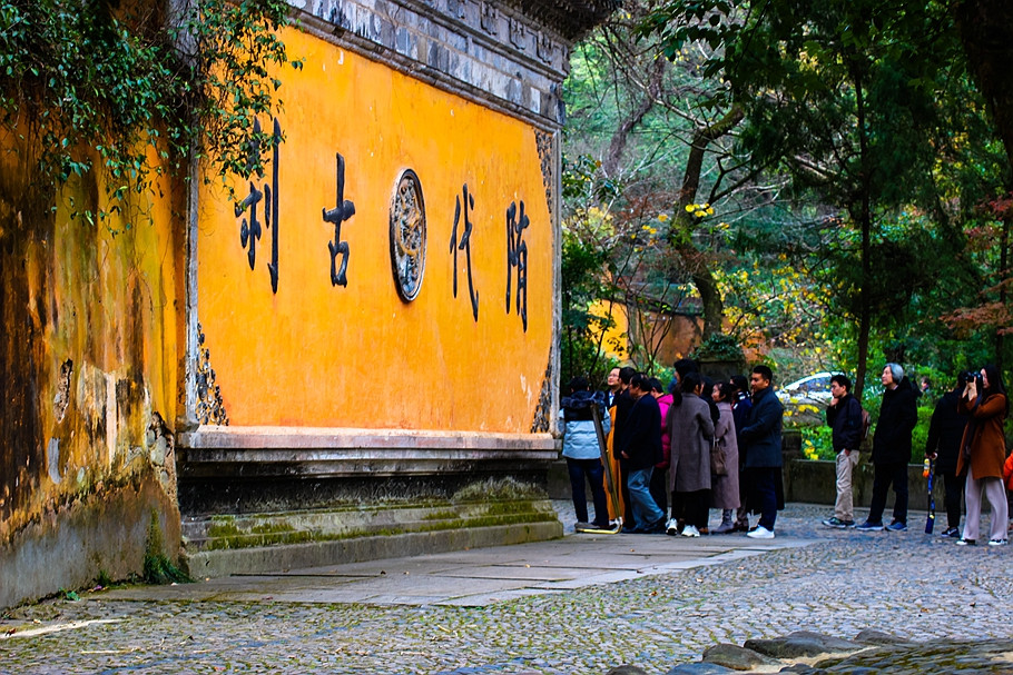 在寺院内巧遇一批外国旅客,他们是来参加【相聚浙里——国际人文交流周】活动的。