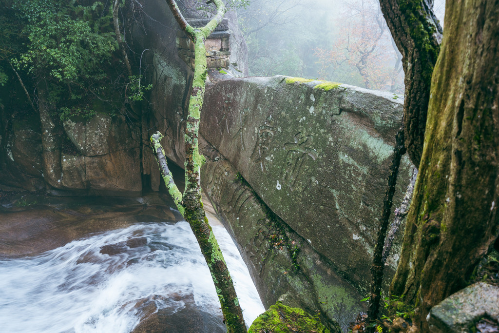 当年徐霞客从石梁俯视百丈深渊时,曾记载道:“余从梁上行,下瞰深渊,毛骨俱悚。”