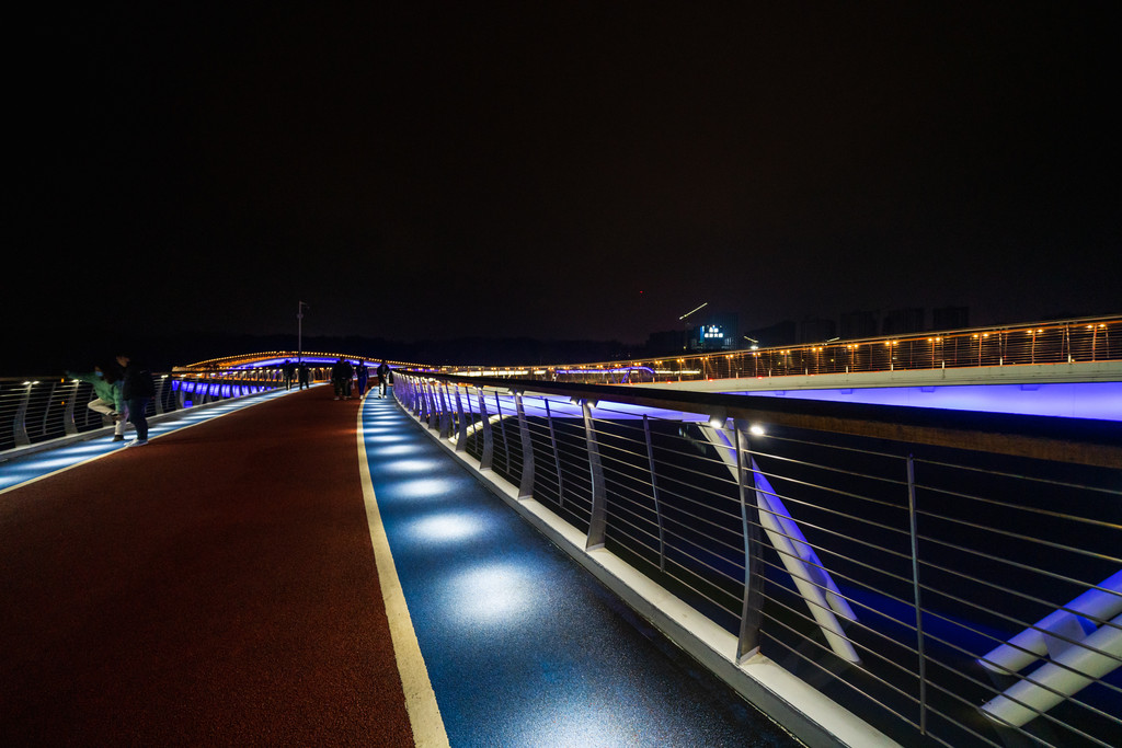 ️始丰湖公园有绿地景观、建筑景观、市民广场、休闲道路、景观桥梁等。是天台县人们休闲娱乐的好去处,如今这座美丽的桥一到夜晚时分就亮起灿烂的光芒,随着光色的变幻,这里成了人们夜晚出游的好去处。