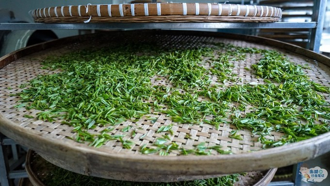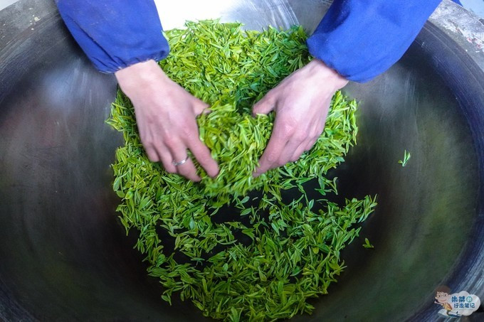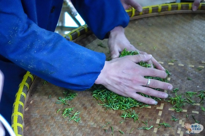 天台山云雾茶为半烘半炒型绿茶,系手工炒制,经摊收、杀青、堆凉、轻揉、初烘、烘干等多道工序,为了保证茶口感的特色只采春茶,跟着茶农,我们来到茶园亲自采摘,途中我问起茶农双溪茶叶为何特别出名时,他们自豪地说:“我们村子土质好,水质好,没有工厂,没有一点污染哩!”然后在老艺人的手把手指导下炒茶,将新鲜茶叶摊放,再经过高温杀青,摊开散热放凉,用轻柔的手法加搓揉,第一次烘干新鲜茶叶的水分,再度散热放凉,之后就是入锅炒制,低温慢慢辉焙。