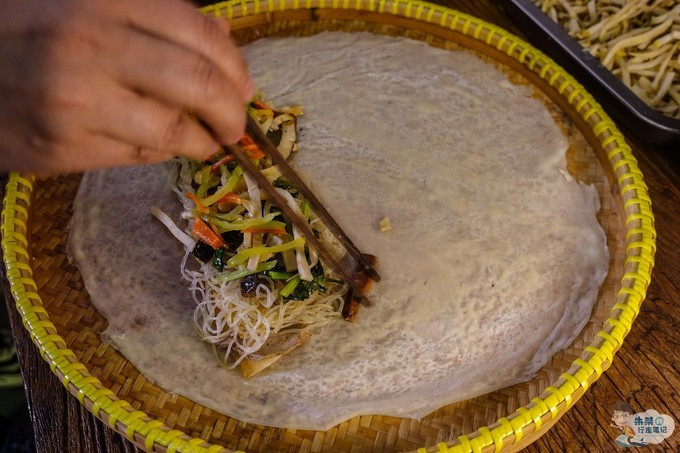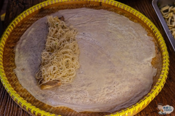天台山的美食也是不可少的。饺饼筒,是天台乡民的家常便饭之一,也是来天台必尝的小吃。猪肉、猪肝、蛋皮、豆腐、金针、木耳、粉丝、笋丝、菜梗要依照一定顺序放在面饼里一一裹上,再放在鏊上用油烙得两面油汪汪,黄灿灿。(蔬菜也会根据时令蔬菜而变化。)饺饼筒筒里各色佳肴经过高温油气的熏蒸已不再松散而并成一个整体,食时不会散落,而且多种荤素美味香气互相渗透,鲜味融会化合,汇成一种绝对特殊的鲜美滋味。