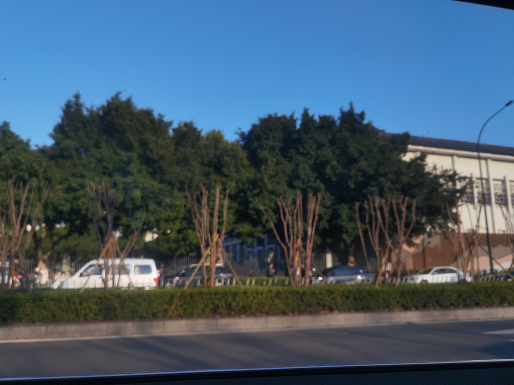 外面二十五六度了,车里也很热,通风开空调。导航推荐的这条路,在人民东路段路况不太好,轰隆轰隆的开着路两边不时有农舍和学校,速度提不起来。