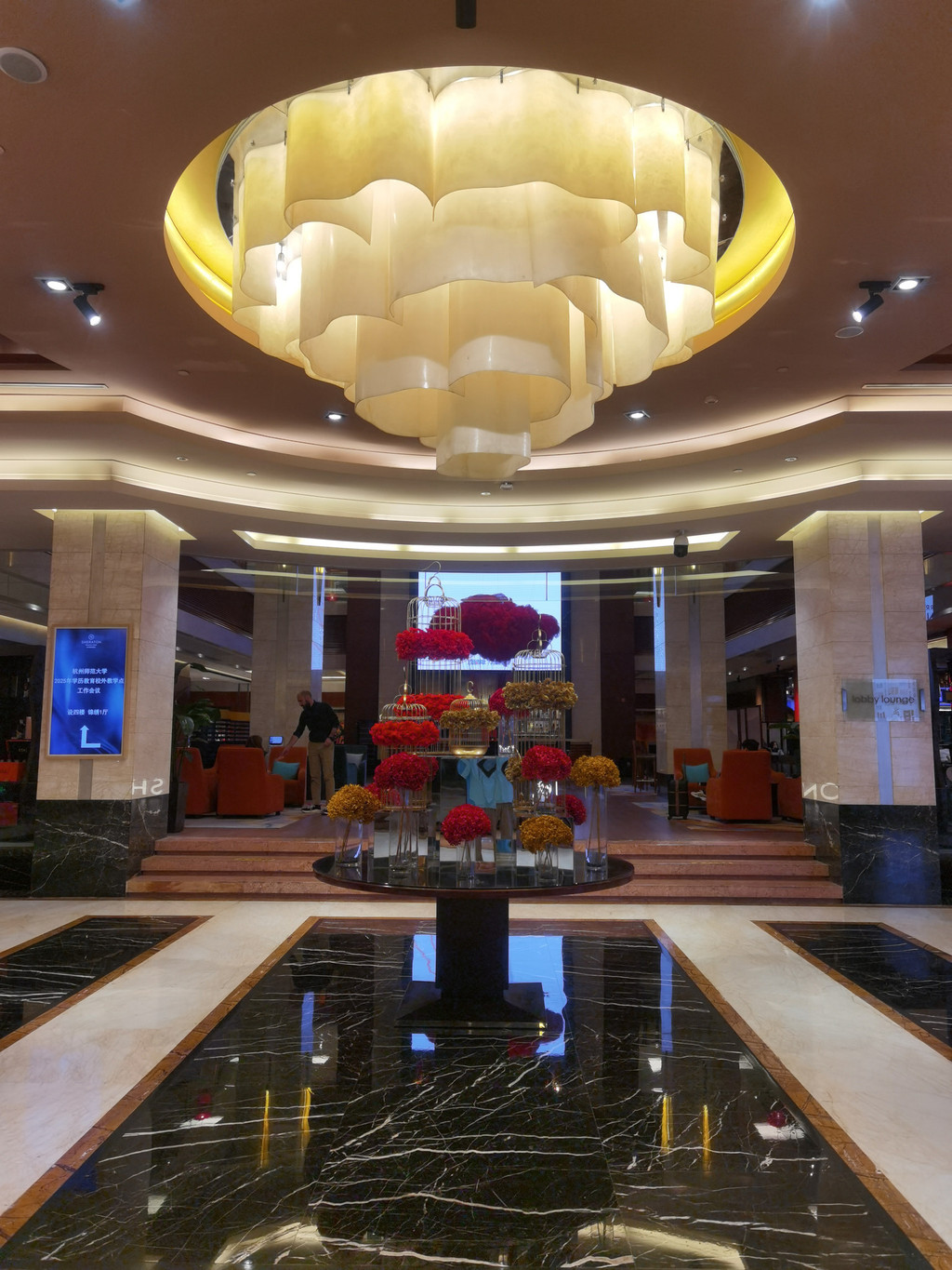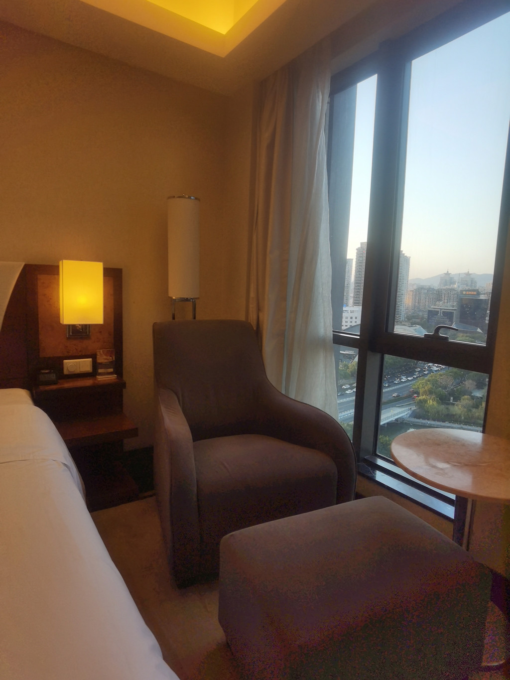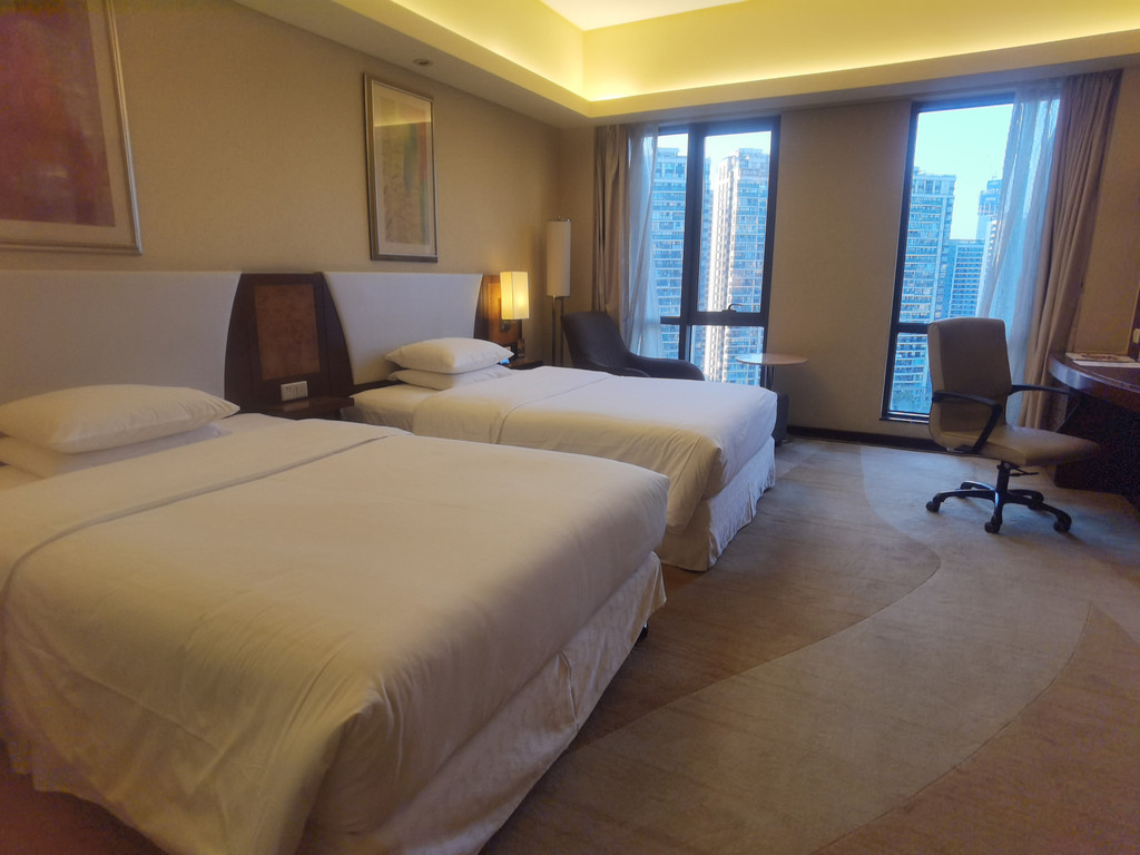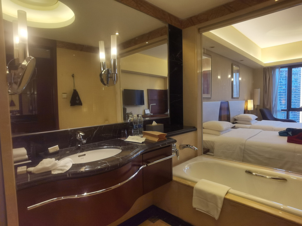 五点半,前台办完手续,我们到房间发现是大床房,而我们是需要双床房,打电话到前台前台,服务员很快就给我们换一间双床房。