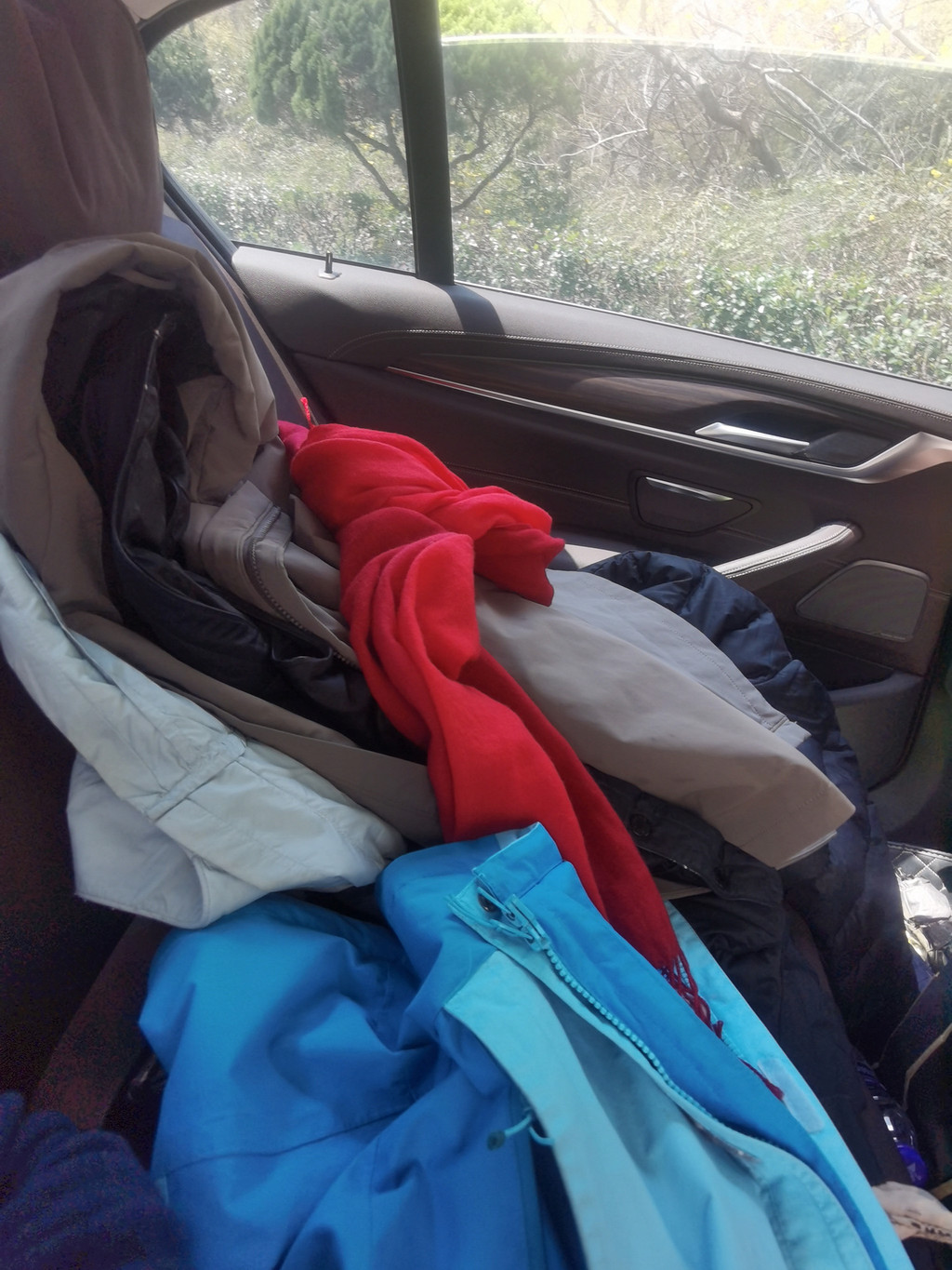 气温从几度蹦到20多度。我们回到车里,好热!赶紧脱衣服。自己开车就是好,脱下来的衣服堆了一大堆在车里。