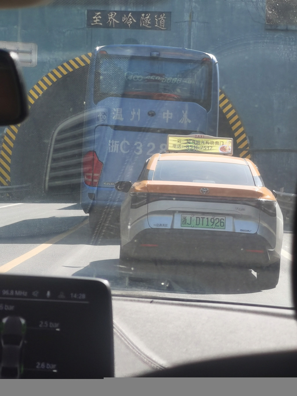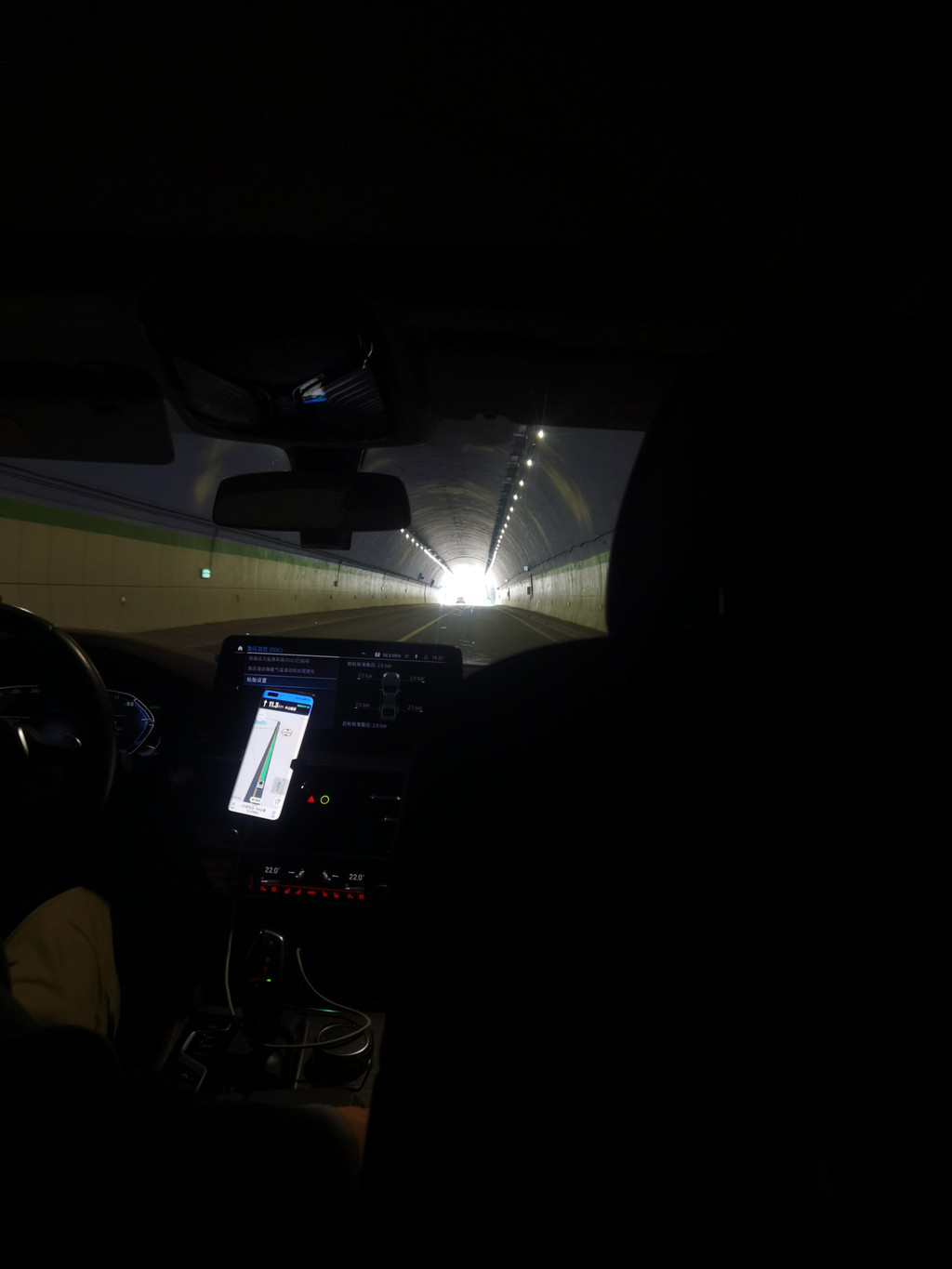 2点28,进入隧道。这个隧道是一个双向隧道,来往大车多,所以我们还是乖乖的跟在这个大车后面。