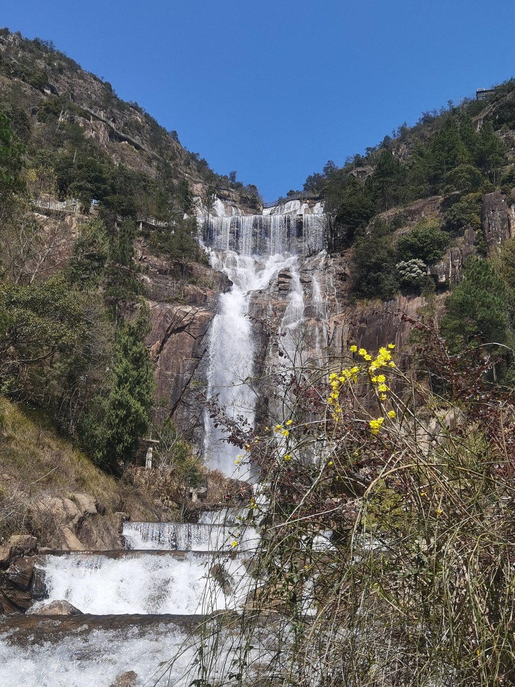 早上六点过醒,望了望远处的天台山,大瀑布还没上班。在携程上想要延住一晚,都没有房了,又电话前台说是今天没法延住,因为所有的房都满了,今天这是要干啥?