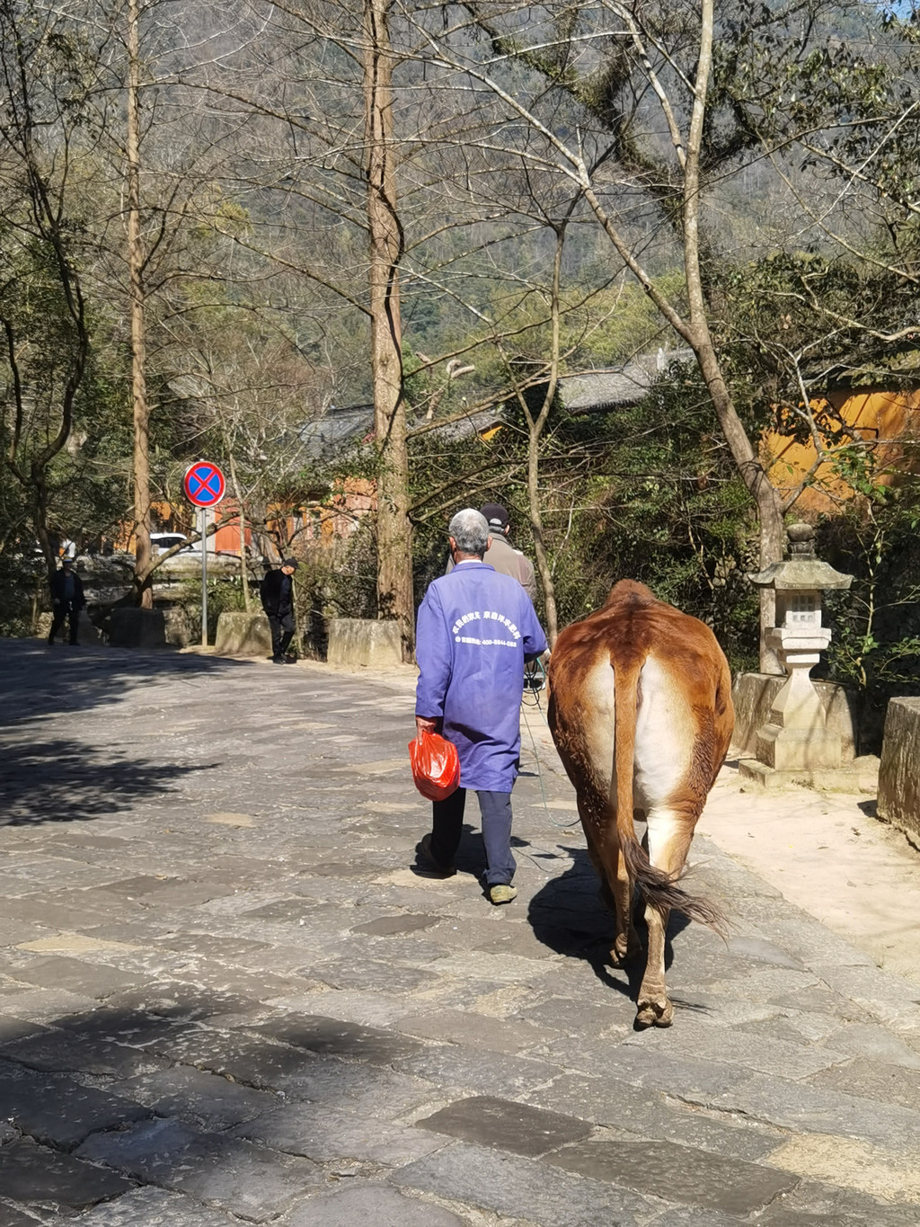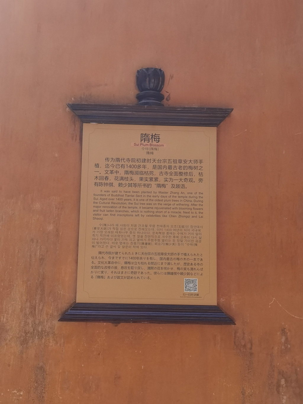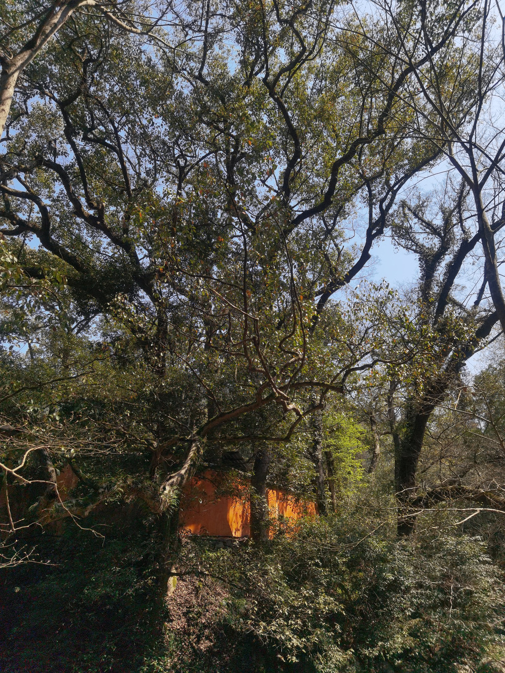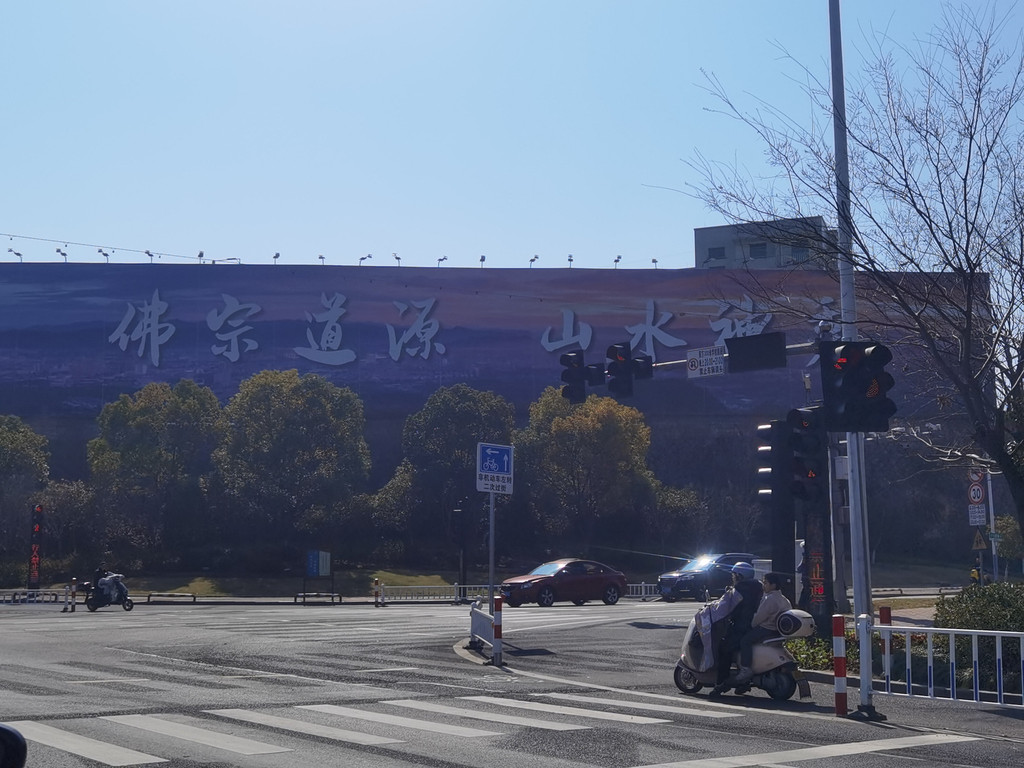 车往上开,到达天台宾馆。里面停车场也基本满了,我们想实在不行就住在这家酒店,总可以停车吧。结果上携程一查,全订完了!这么火!不过我们最终还是在宾馆内找到一个车位,停了车往下走不远就到了国清寺