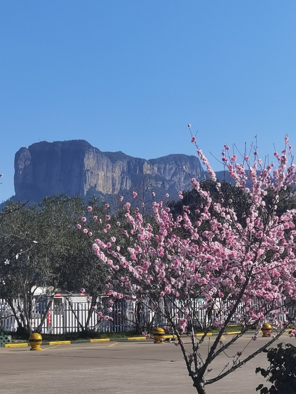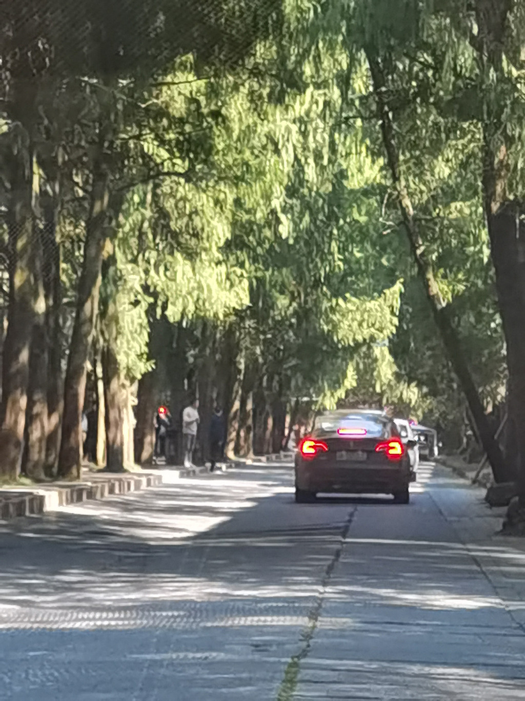 远远望去,曲曲弯弯的盘山道上,不少游客在往上爬。停车场保安对我们说车位已满了,让我们停到外面p3停车场。老公说我先进去绕一圈,没有车位我就停到p3。结果进来就找到了车位,而且车位不少。我们猜想他看我们是外地车牌,想让我们停远一点的停车场,给后来的车让位置吧,不好