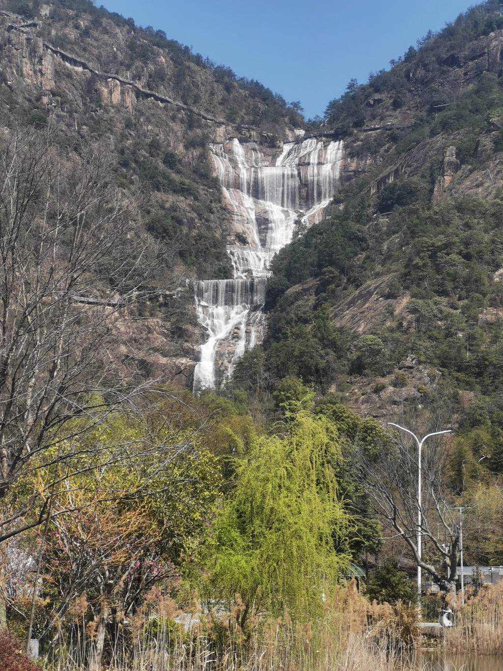 从国清寺开车往天台山大瀑布景区的道路,环山两车道,湾都比较急,路况还可以。这一段路车比较少,似乎大家还没有意识到这条路其实很便捷的