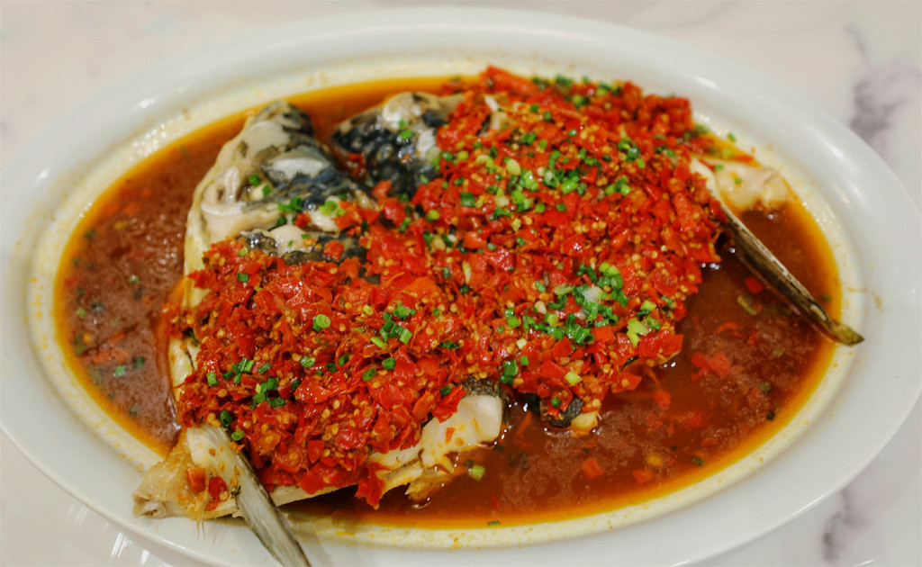 剁椒鱼头:这是湘菜中的代表性菜品,色泽红亮、味浓、肉质细嫩,肥而不腻,鲜辣适口。
